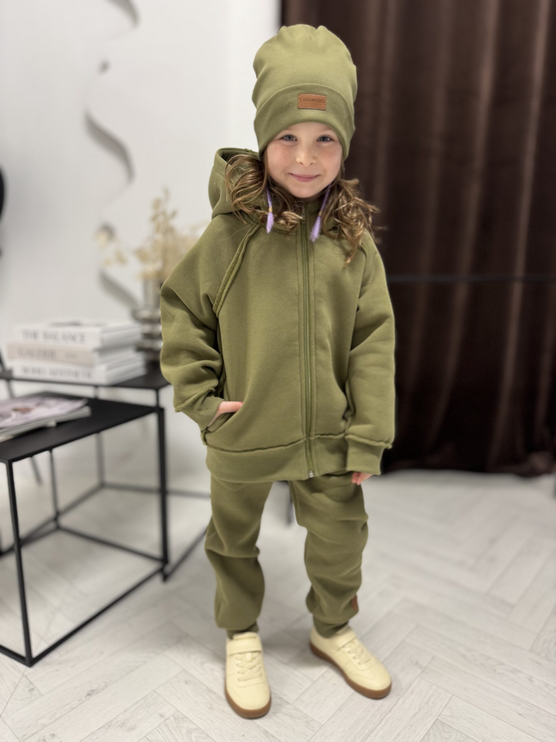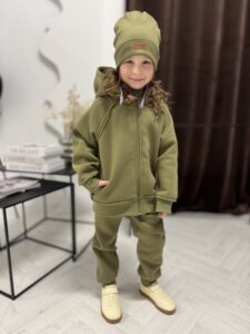 BLUZA ocieplana dla dzieci rozpinana OLIWKA- Dresówka Premium, Certyfikat OEKO-TEX®