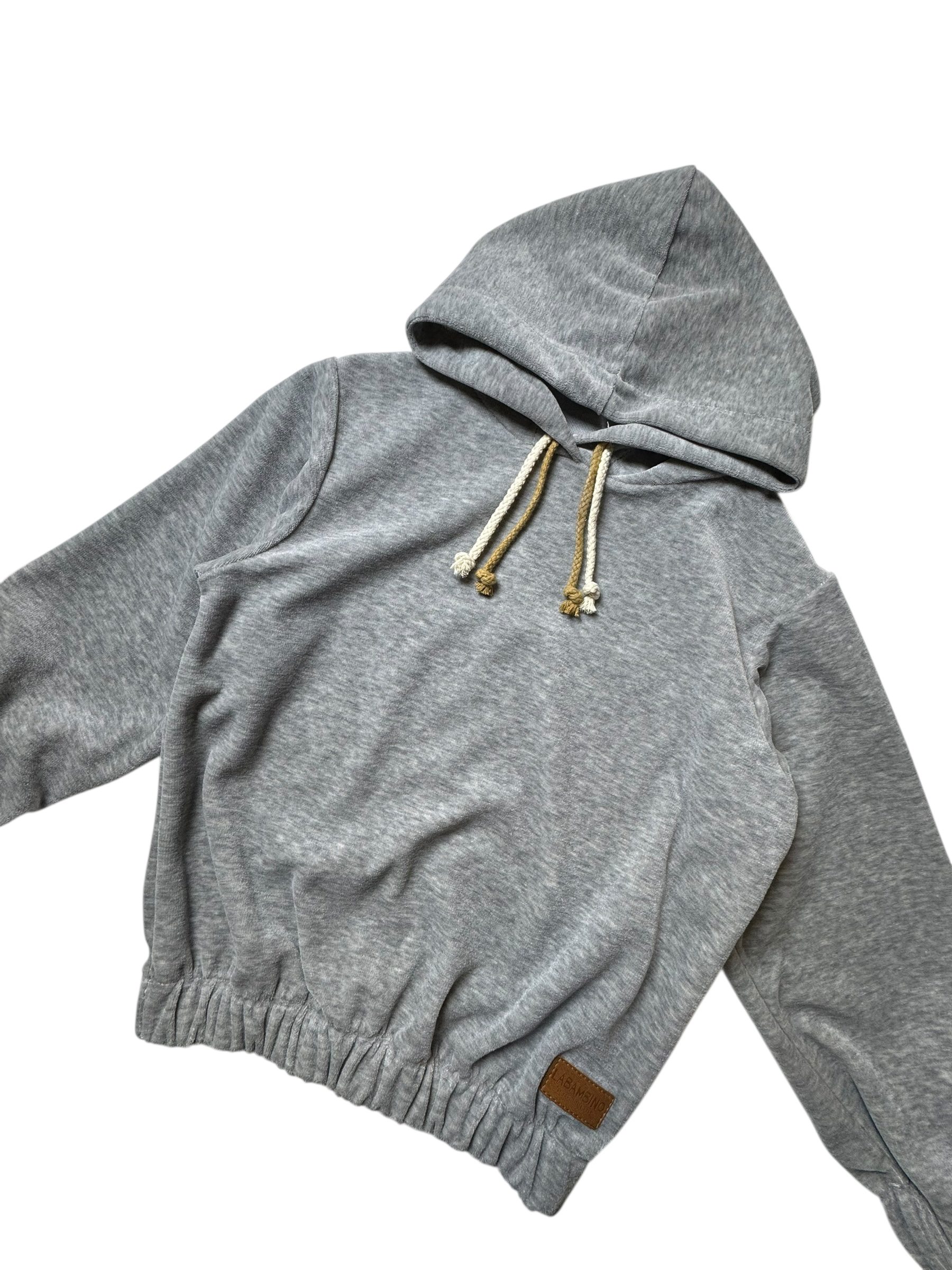 Bluza welurowa SZARY sznureczki z kapturem – komfort i styl w jednym!