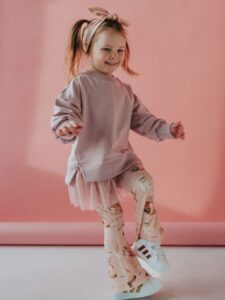 Bluza z tiulem i ściągaczami w kolorze PINK wykonana z dresówki premium to elegancka i wygodna opcja dla dzieci. Oto kilka cech i zalet takiej bluzy.