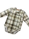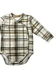 - Wygodny krój kopertowy – ułatwia ubieranie i przewijanie noworodka, bez konieczności przekładania przez główkę.