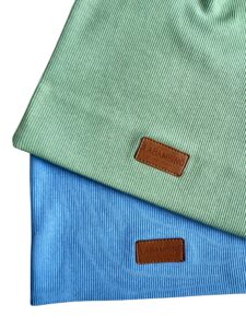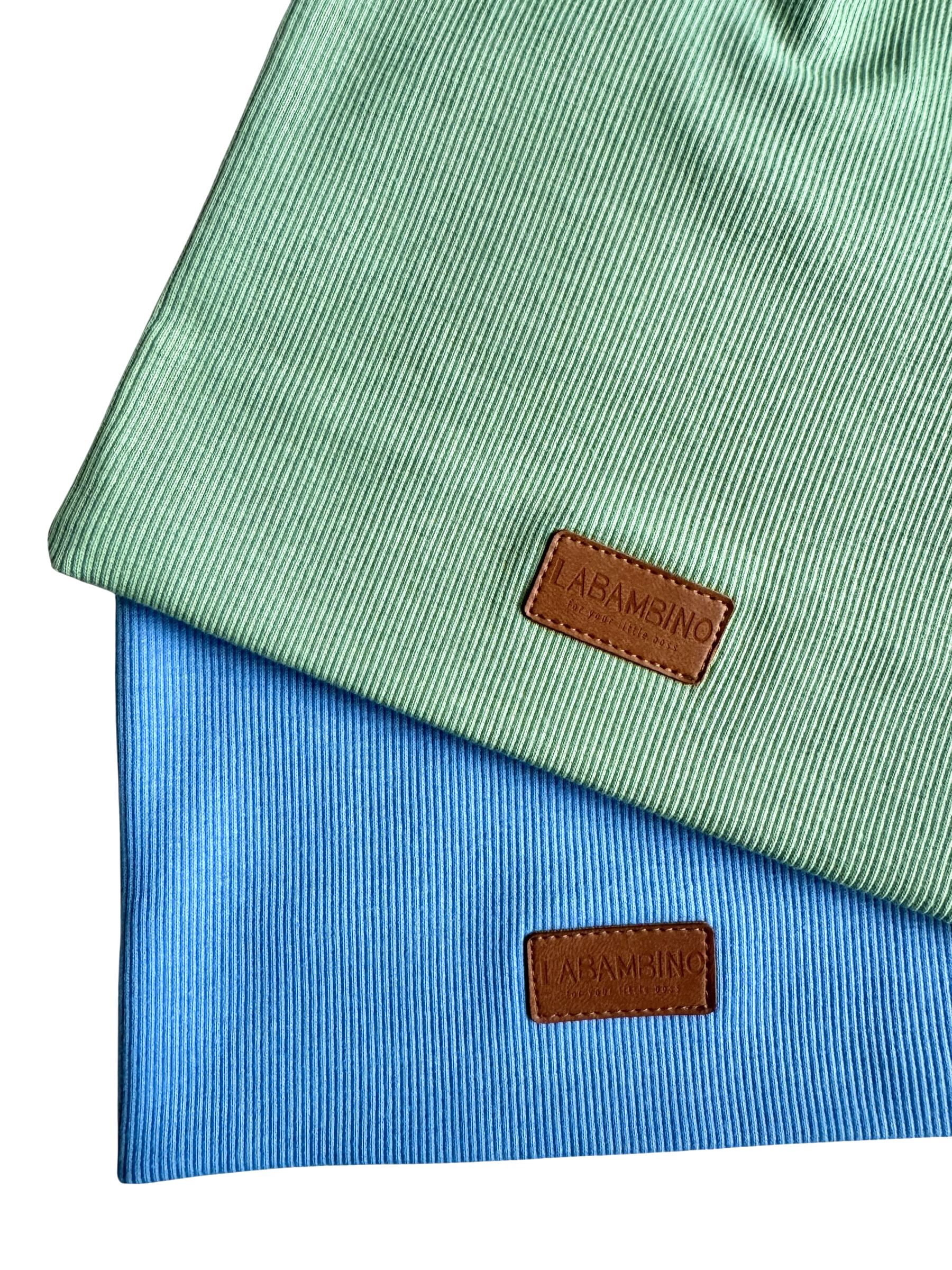 Dzianina prążkowana jest elastycznym materiałem, który dobrze dopasowuje się do głowy dziecka, nie uciskając jej zbyt mocno.