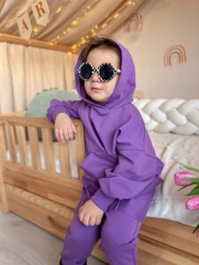Dres chłopięcy z baggy FIOLET – Bluza w kroju oversized z kapturem ze spodniami baggy Standard OEKO-TEX®
