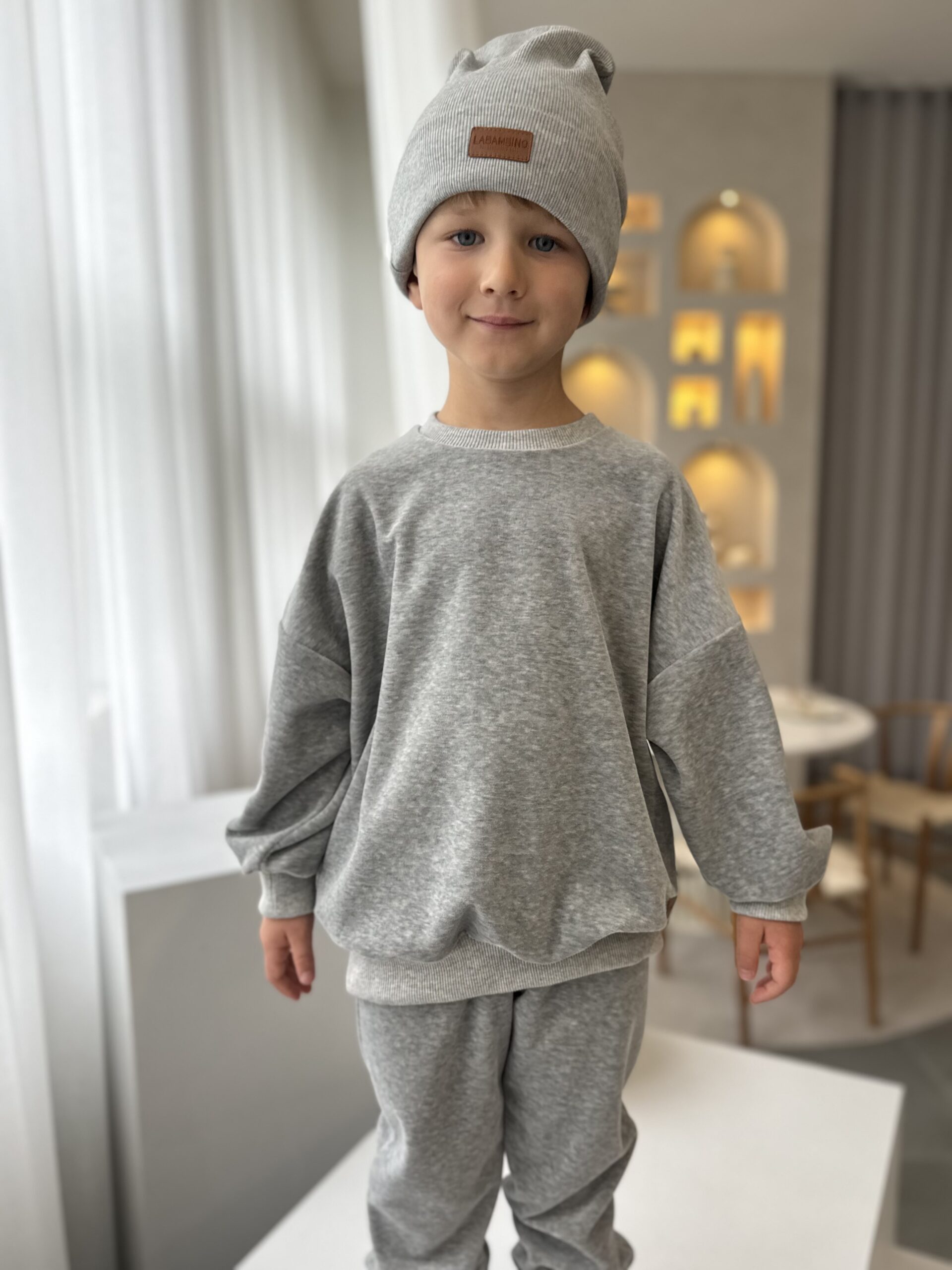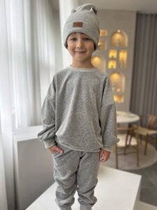 Dres welurowy dla chłopca SZARY ściągacze– wysoka jakość i styl