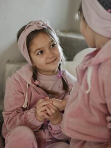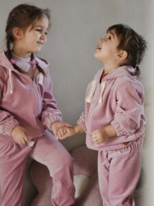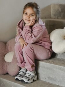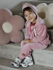 Oferujemy wyjątkowy dres welurowy dla dziewczynki, wykonany z najwyższej jakości weluru bawełnianego, który posiada certyfikat *Oeko-Tex Standard 100*, gwarantujący bezpieczeństwo i komfort noszenia.