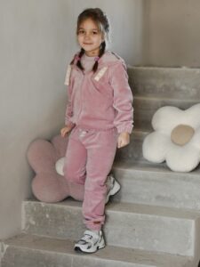 Dres welurowy dla dziewczynki RÓŻ z bluza rozpinana– wysoka jakość i styl