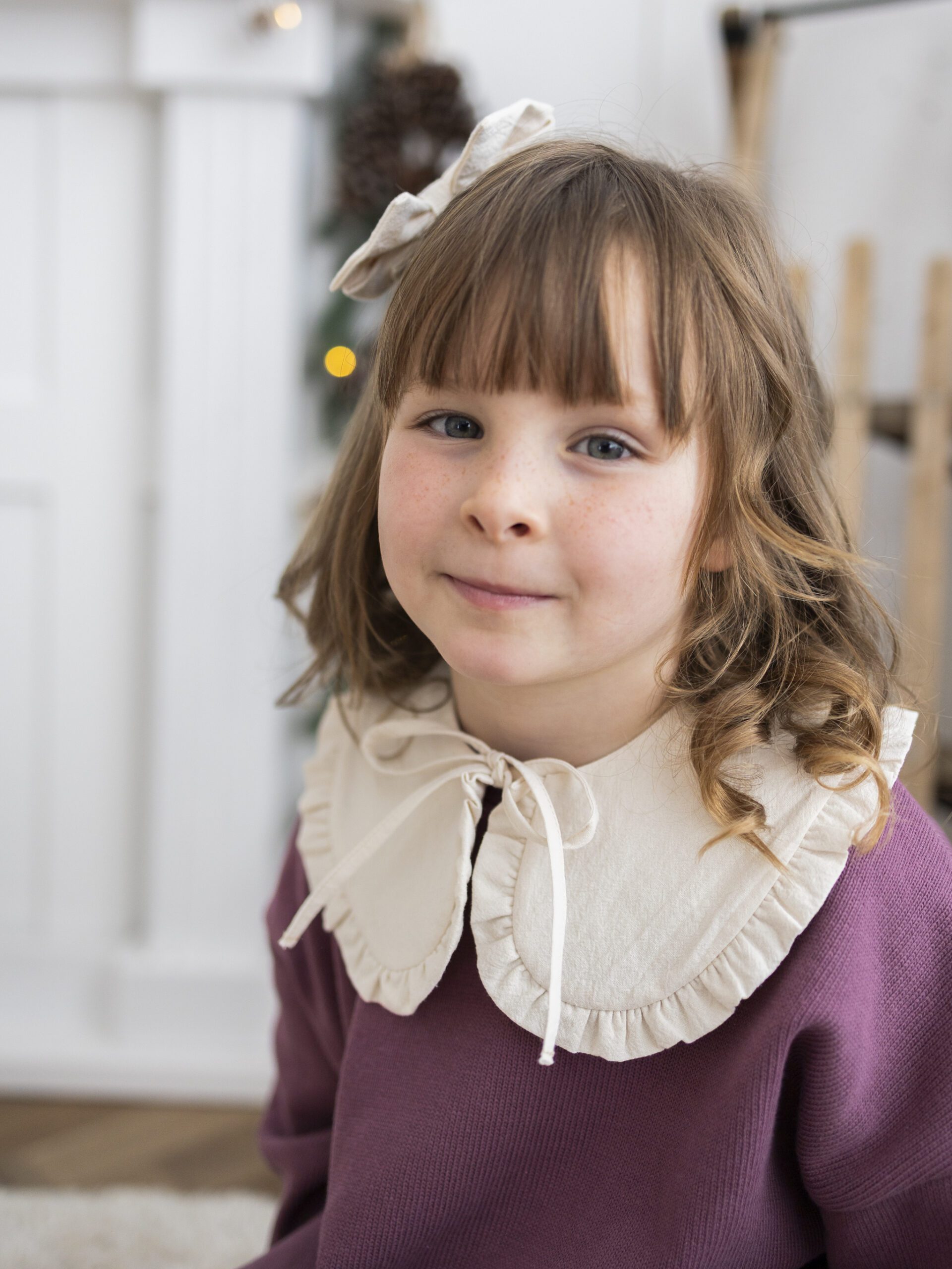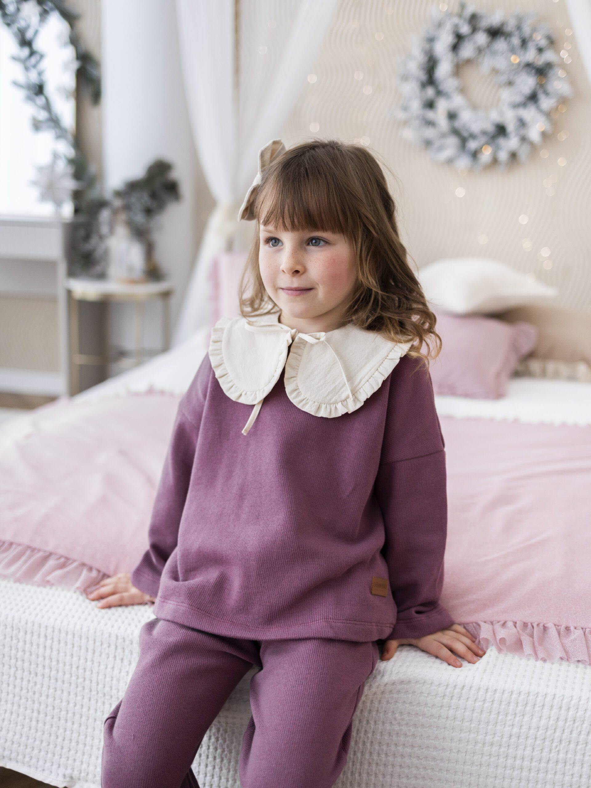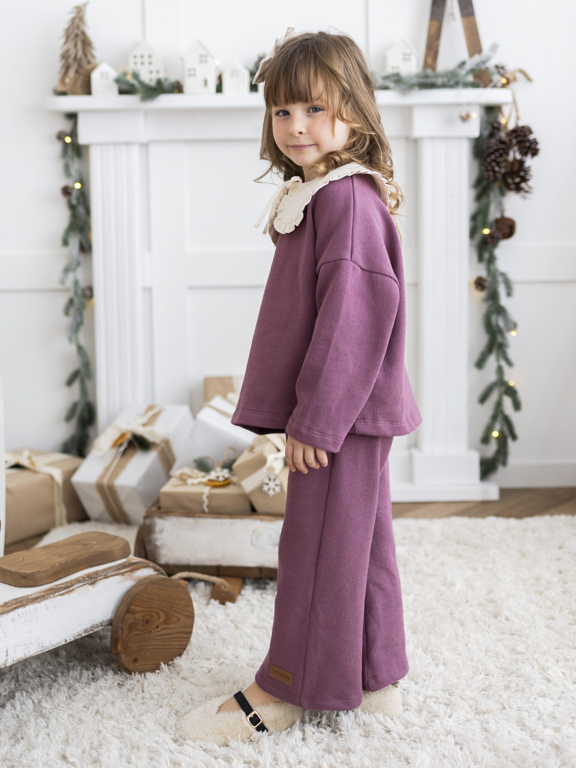 W skład zestawu wchodzi miękka bluza sweterkowa, uroczy kołnierzyk dodający elegancji oraz modne kuloty – razem tworzą stylowy i przytulny komplet, idealny na świąteczne spotkania, rodzinne sesje zdjęciowe czy szkolne jasełka. Kolor ecru pięknie komponuje się z zimowymi barwami i podkreśla wyjątkowy, świąteczny klimat.