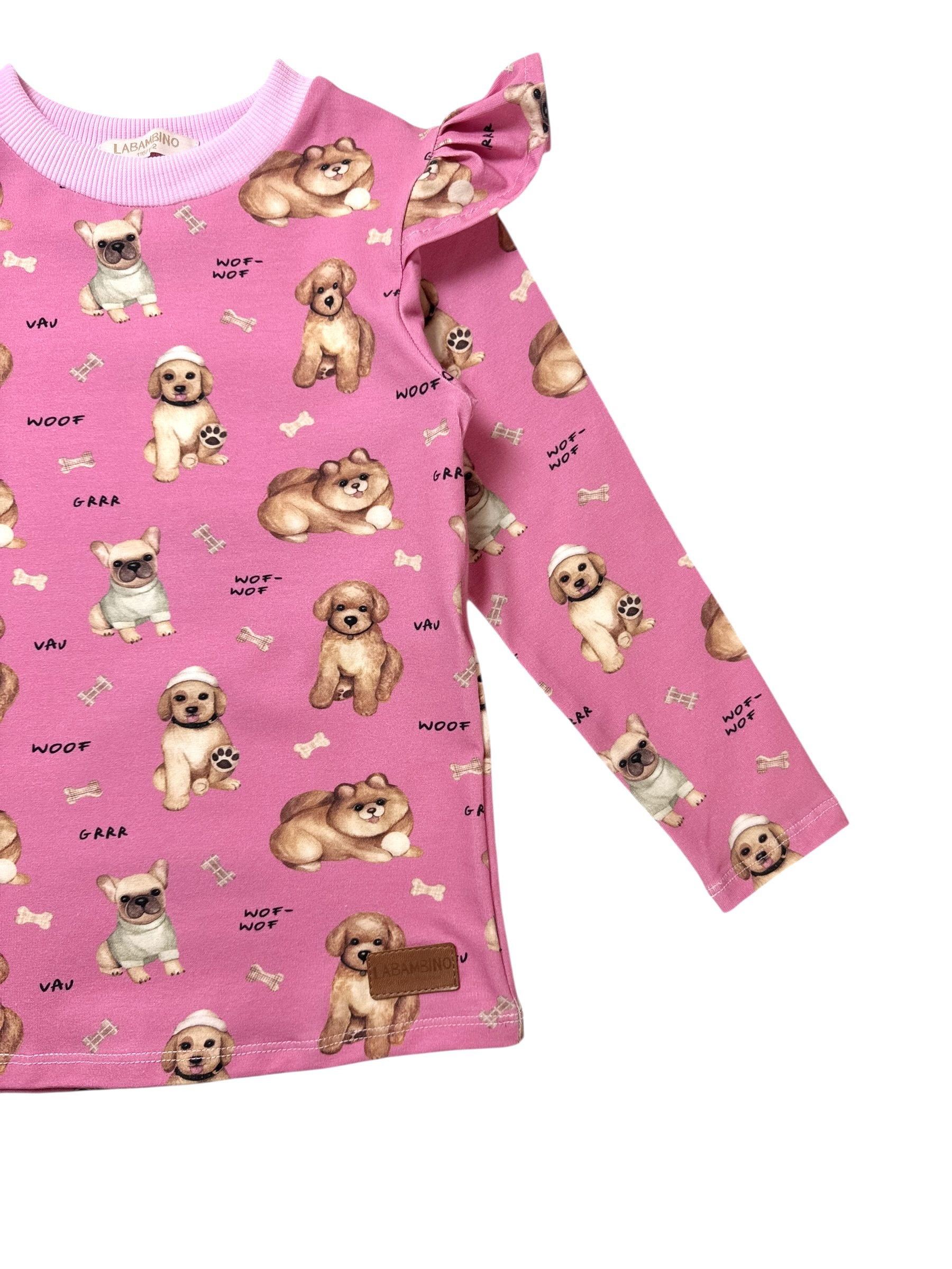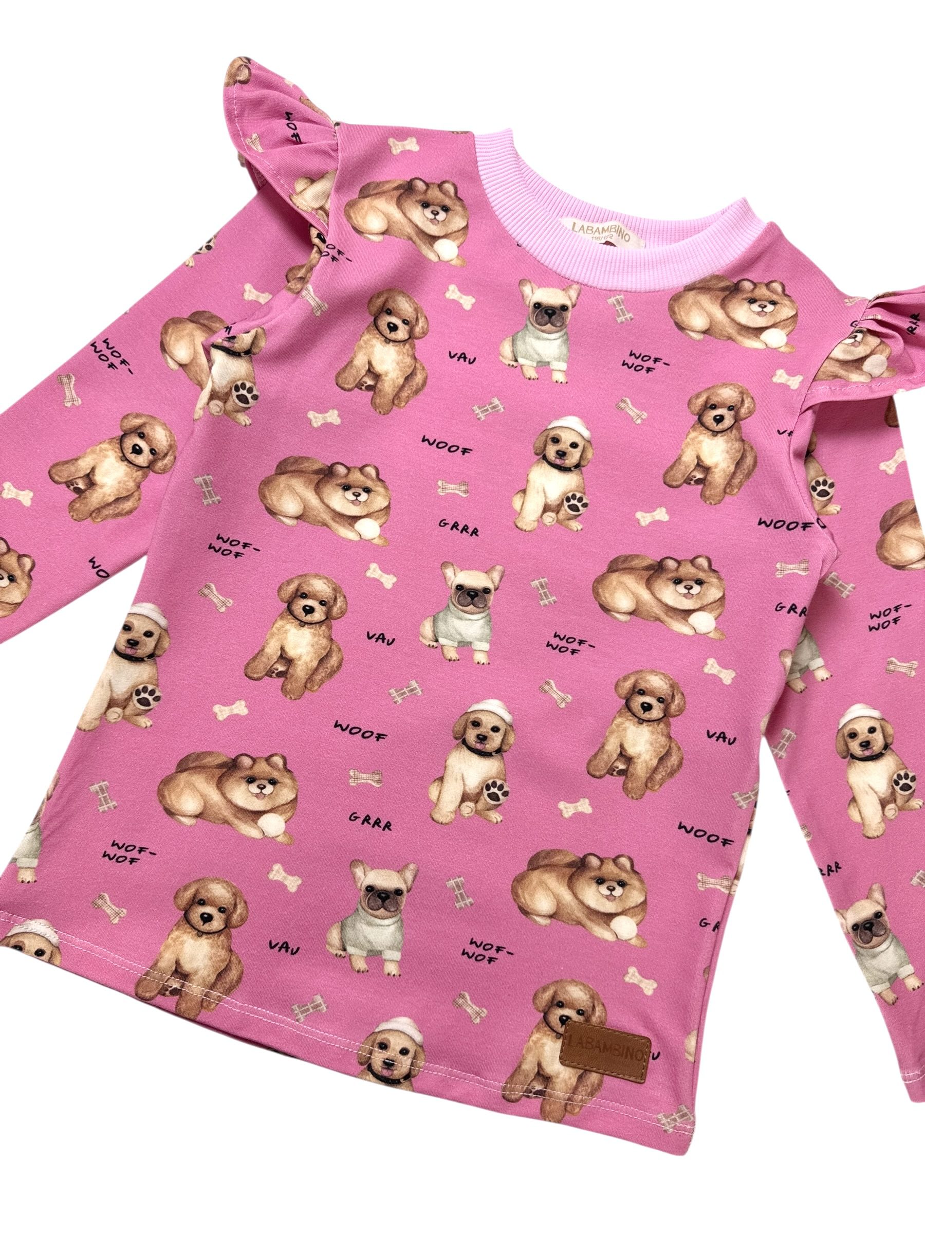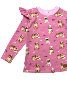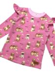Koszulka dziewczęca z falbankami PIESKI róż- Jersey Premium, Standard OEKO-TEX®