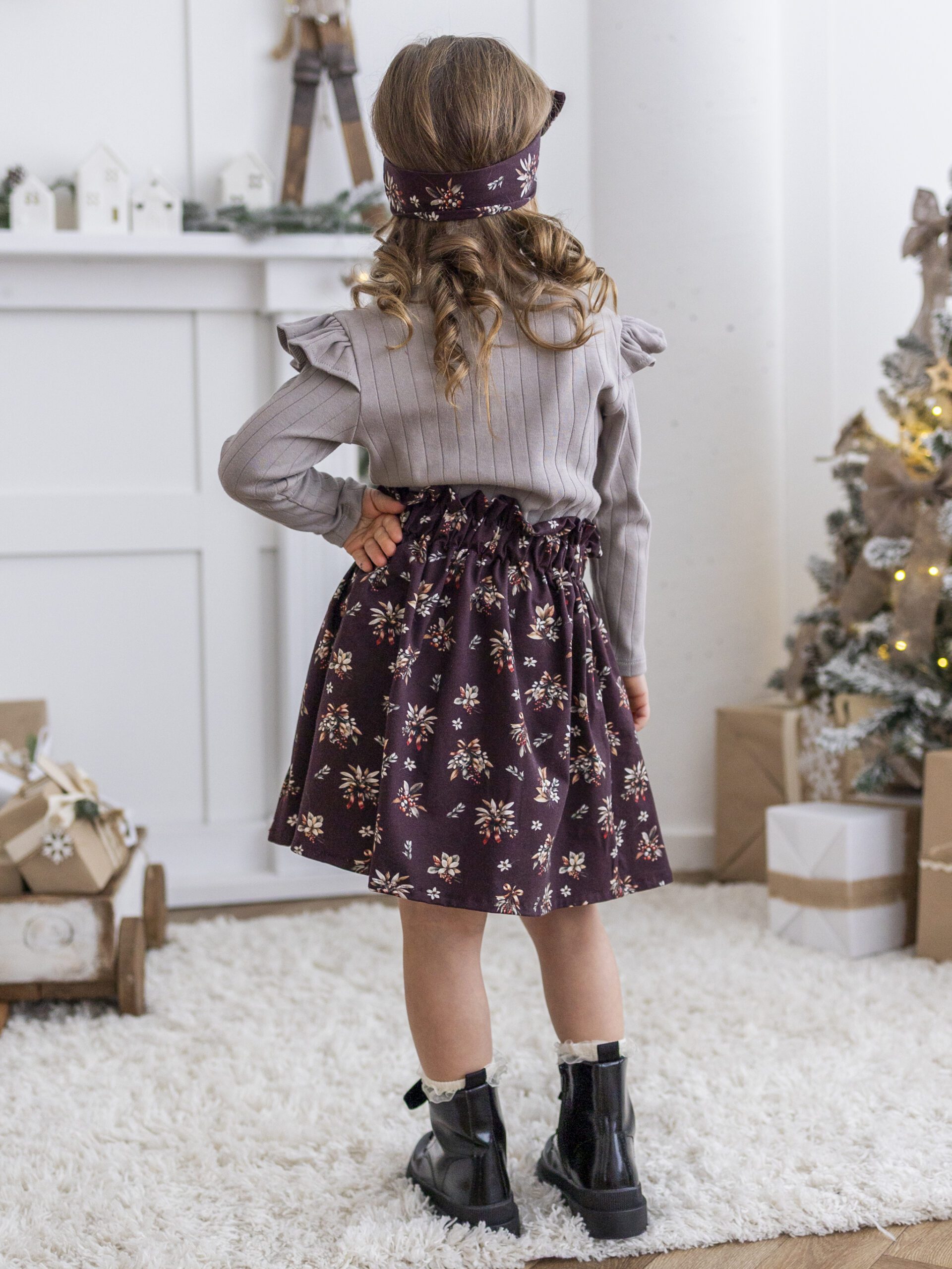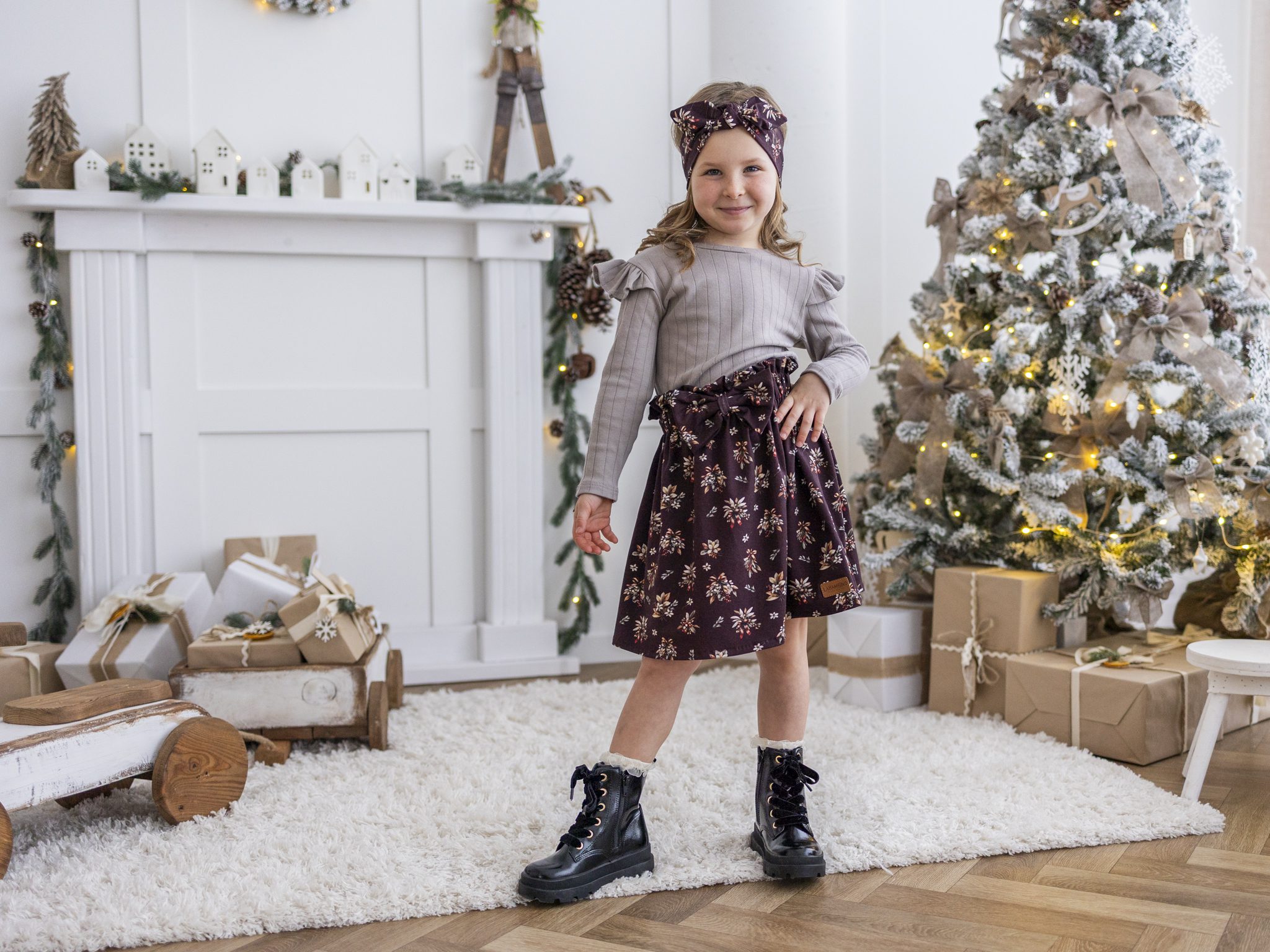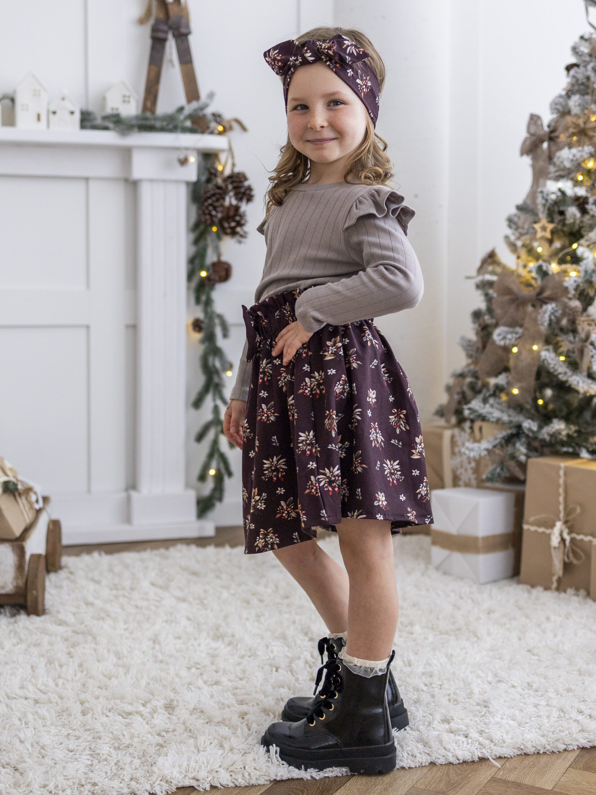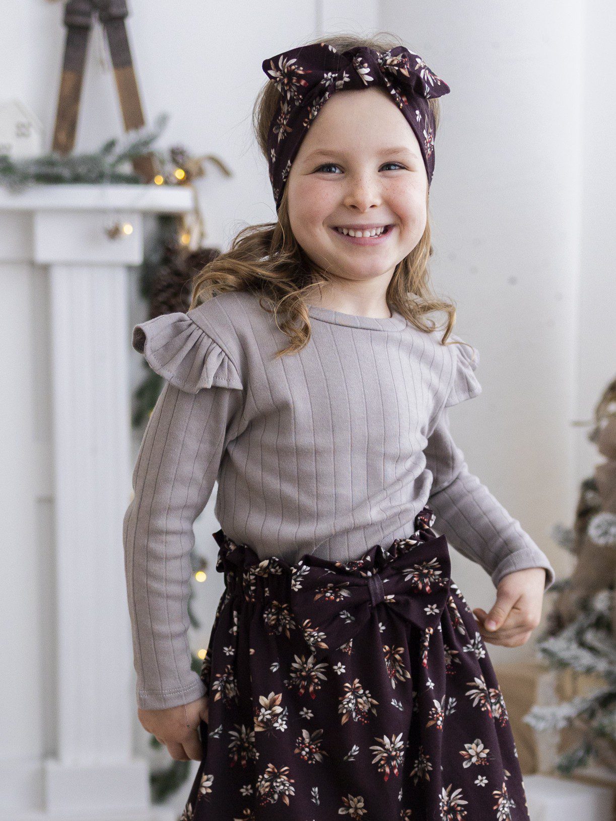 Koszulka dziewczęca z falbankami SZARY świąteczne- Jersey Premium, Standard OEKO-TEX®