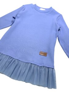 Koszulka z tiulem BABY BLUE z Dzianiny Prążkowanej