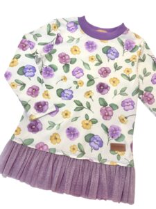 - Elegancki design: Piękny print kwiatowy dodaje uroku i sprawia, że koszulka jest idealnym wyborem na każdą okazję. Tiulowy akcent dodaje lekkości i dziewczęcego wdzięku, czyniąc tę koszulkę wyjątkową w garderobie każdej małej fashionistki. To połączenie idealne dla dziewczynek kochających tiul i kwiatowe wzory.