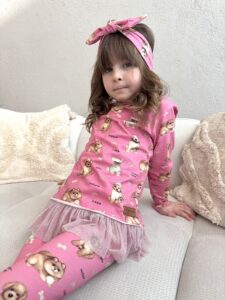 Odkryj naszą wyjątkową koszulkę z tiulem dla dziewczynki w piękny print , wykonaną z najwyższej jakości jerseyu z certyfikatem Oeko-Tex. Ta koszulka to doskonałe połączenie mody dziecięcej i praktyczności, które z pewnością zachwyci każdą małą damę.