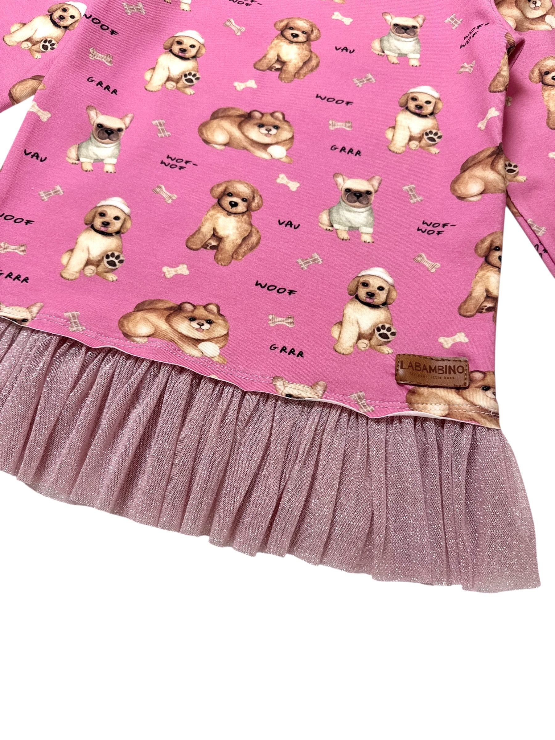 Koszulka z tiulem PIESKI róż- certyfikat OEKO TEX