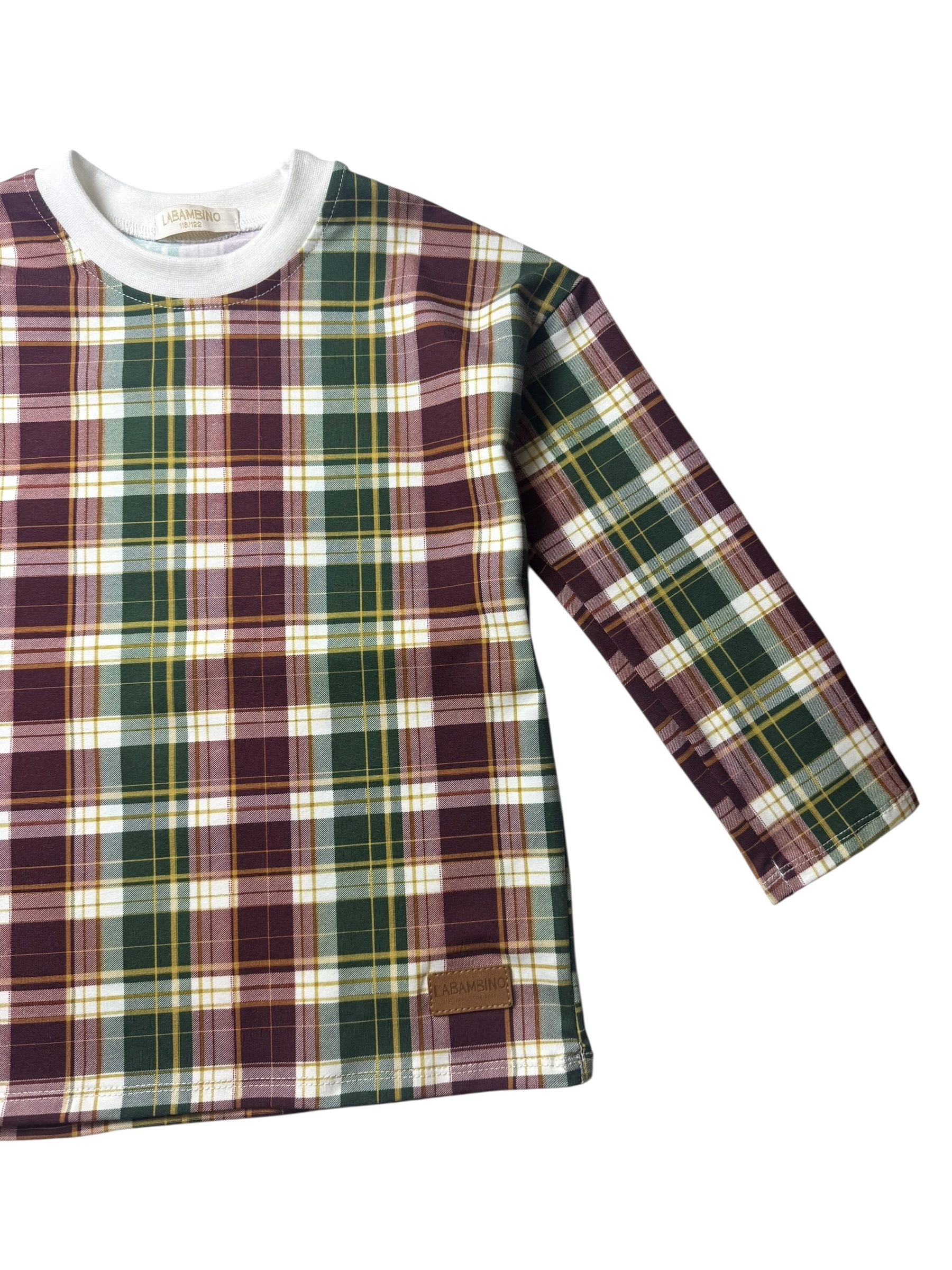 Longsleeve dziecięcy KRATA ZIELEŃ z Jersey Premium – Modny i Uniwersalny Wybór dla Dzieci