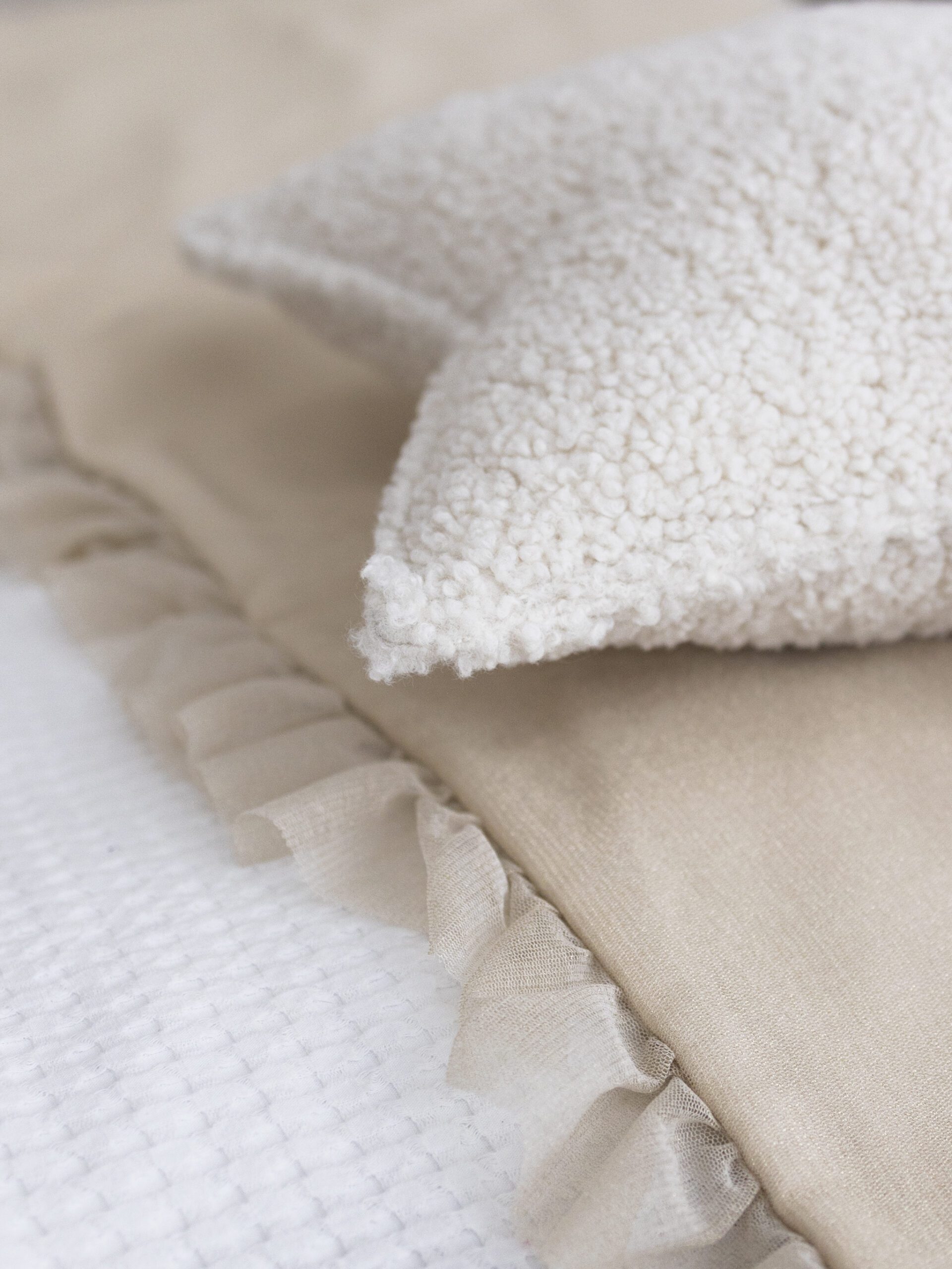 - Dla miłośniczek brokatu… i minimalizmu: Narzuta jest błyszcząca i spełnia marzenia o księżniczkach, ale jednocześnie ma minimalistyczną, elegancką formę. Świetnie wygląda solo, ale też bez problemu pasuje do kolorowych poduch i ulubionych pluszaków.