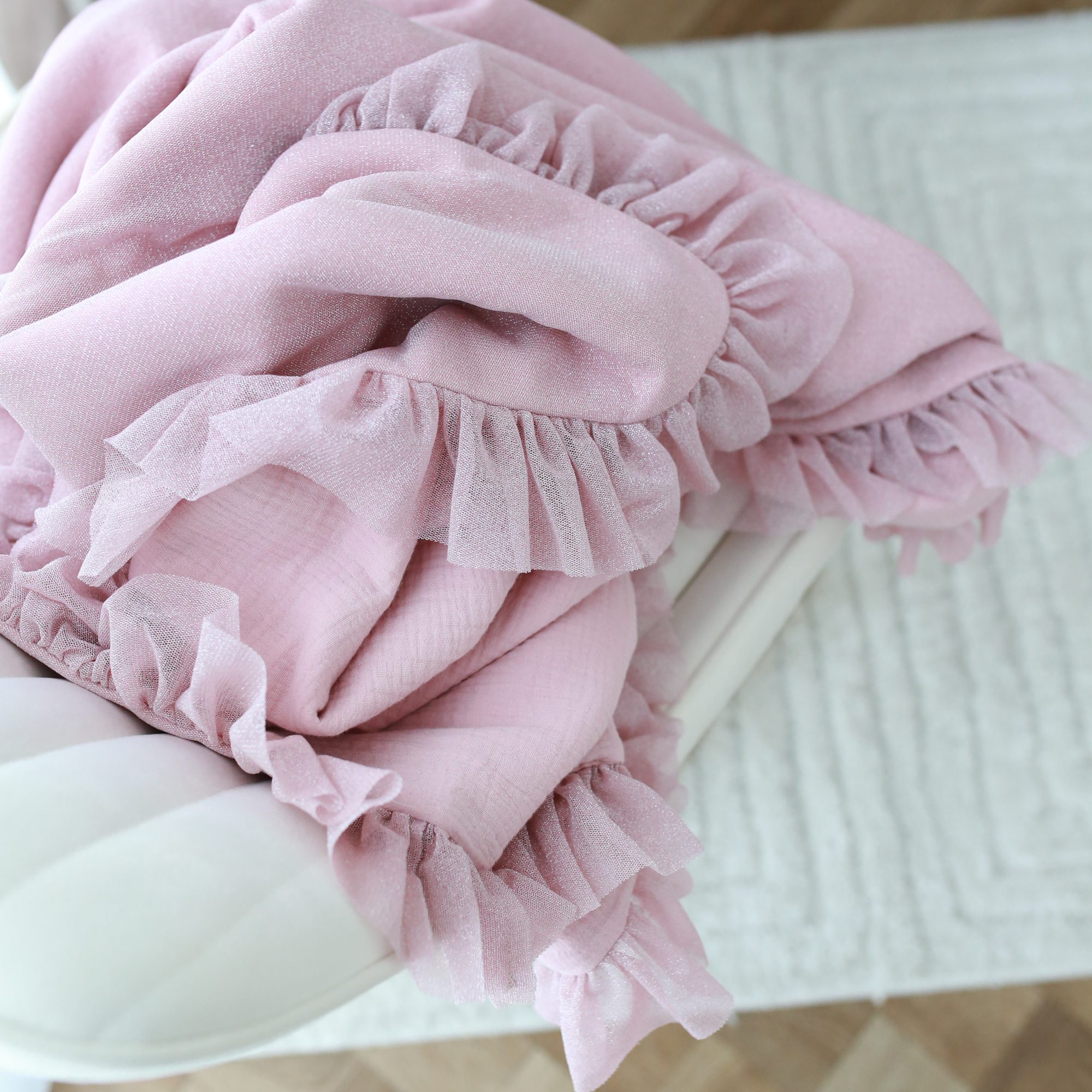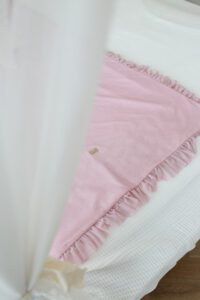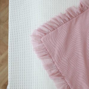 - Komfort i jakość: Narzuta uszyta jest z delikatnego muślinu z bawełnianym ociepleniem, co zapewnia jej lekkość i przewiewność. Ozdobiona miękkim tiulem. Wszystkie tkaniny mają niezbędne certyfikaty bezpieczeństwa – to spokój dla Twojej głowy.