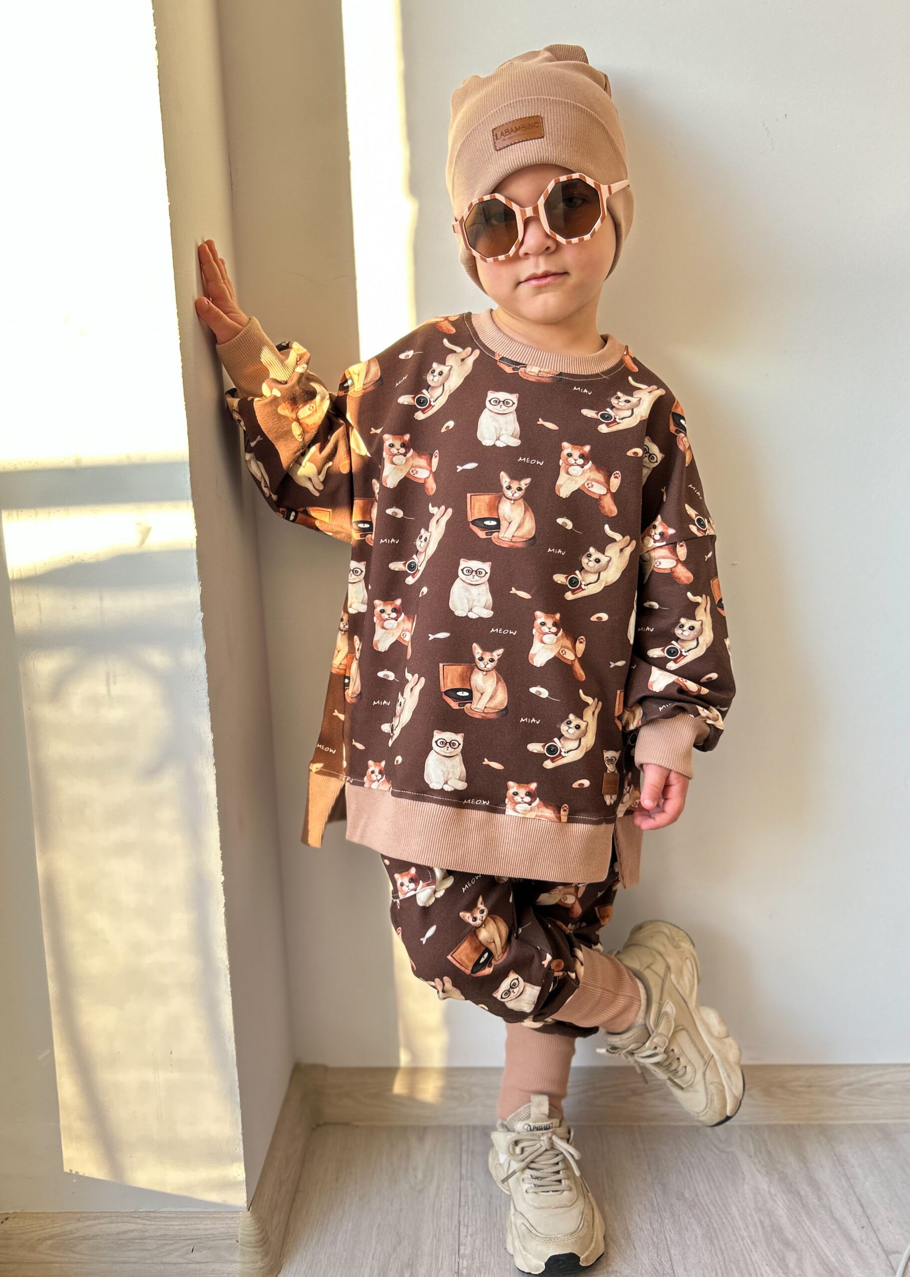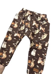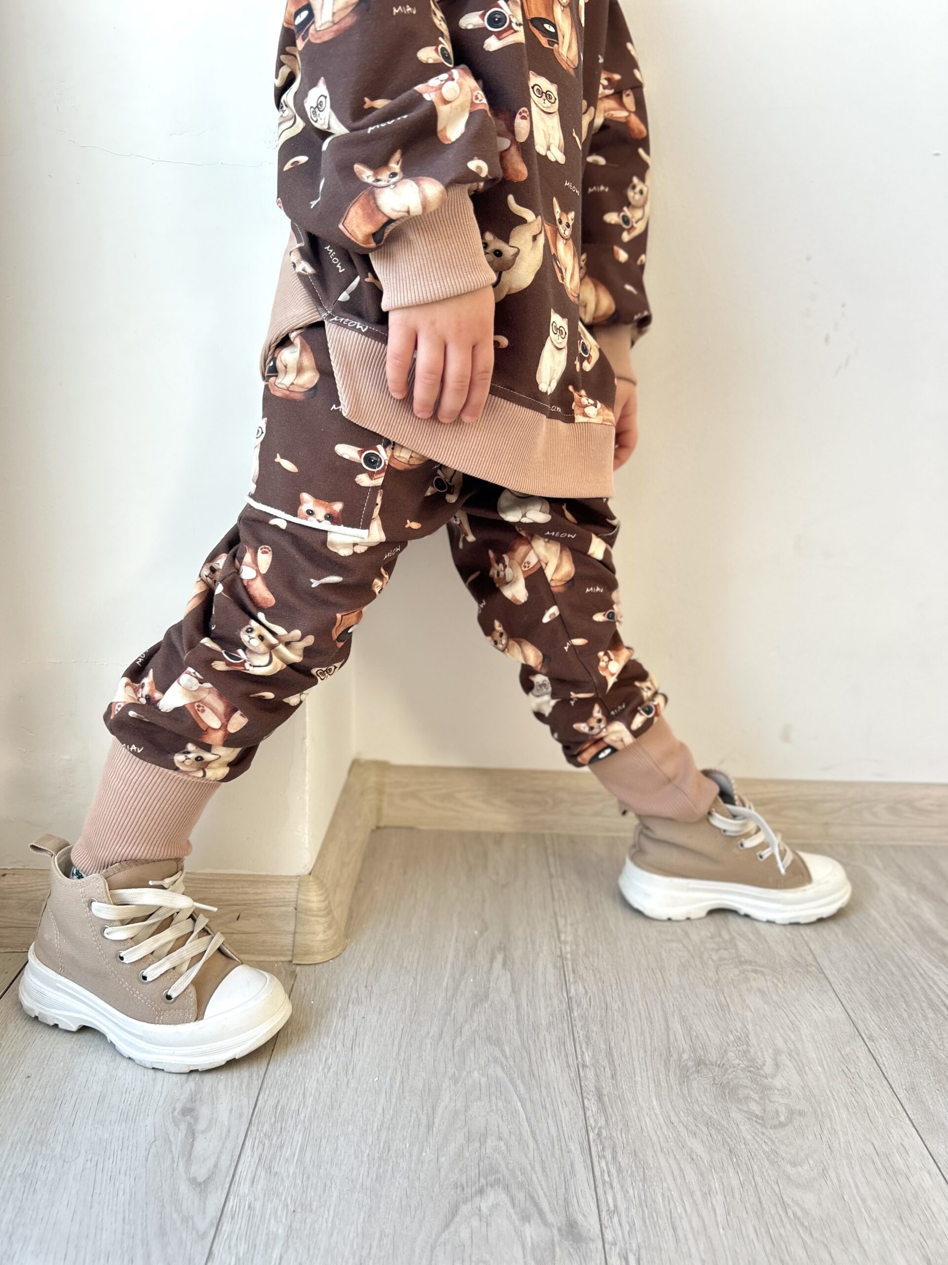 Spodnie chłopięce baggy KOTKI czekolada- Dresówka Premium, Certyfikat OEKO-TEX®