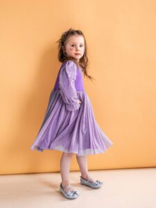 - Tiul, który zachwyca: Sukienka z tiulem brokatowym, który dodaje uroku i sprawia, że sukienka wspaniale się kręci, co uwielbiają wszystkie dziewczynki.