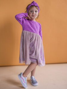 Nasza sukienka dziewczęca JAGNA to połączenie komfortu, stylu i funkcjonalności, które z pewnością spełni oczekiwania zarówno dzieci, jak i rodziców. Jeśli szukasz wyjątkowej odzieży w modzie dziecięcej, ta sukienka dla dziewczynki z tiulem będzie doskonałym wyborem.