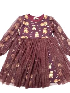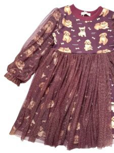 - Tiul, który zachwyca: Sukienka z tiulem brokatowym, który dodaje uroku i sprawia, że sukienka wspaniale się kręci, co uwielbiają wszystkie dziewczynki.