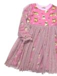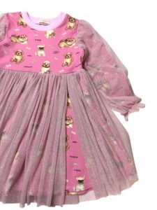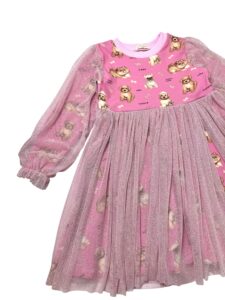 - Tiul, który zachwyca: Sukienka z tiulem brokatowym, który dodaje uroku i sprawia, że sukienka wspaniale się kręci, co uwielbiają wszystkie dziewczynki.