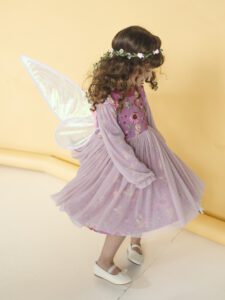 - Tiul, który zachwyca: Sukienka z tiulem brokatowym, który dodaje uroku i sprawia, że sukienka wspaniale się kręci, co uwielbiają wszystkie dziewczynki.