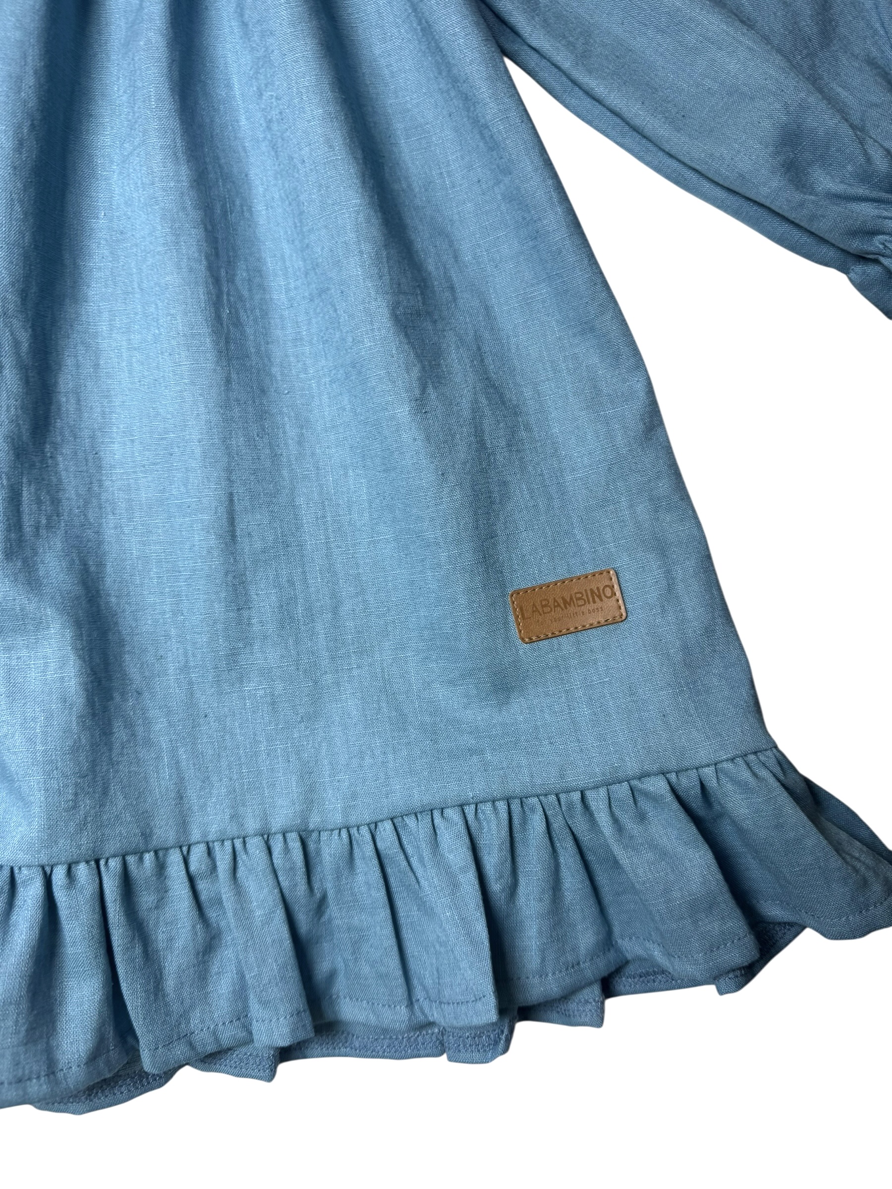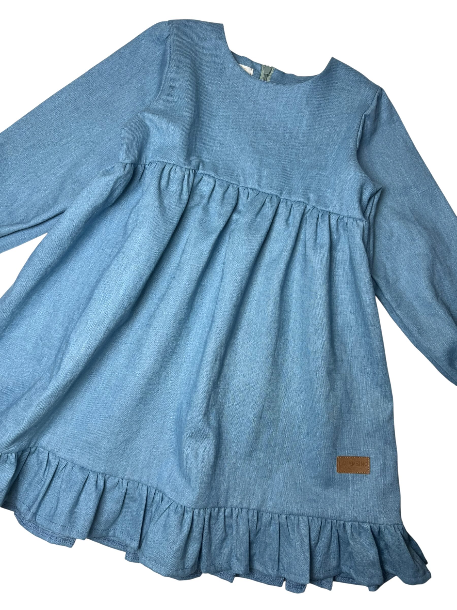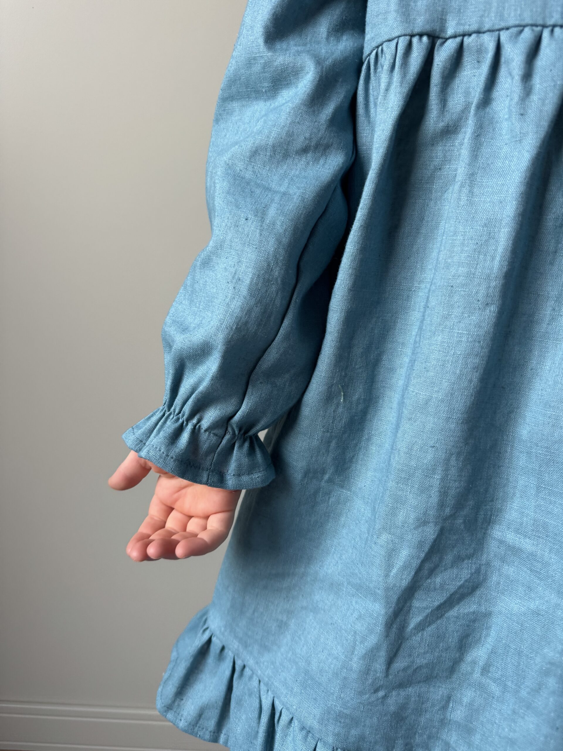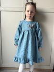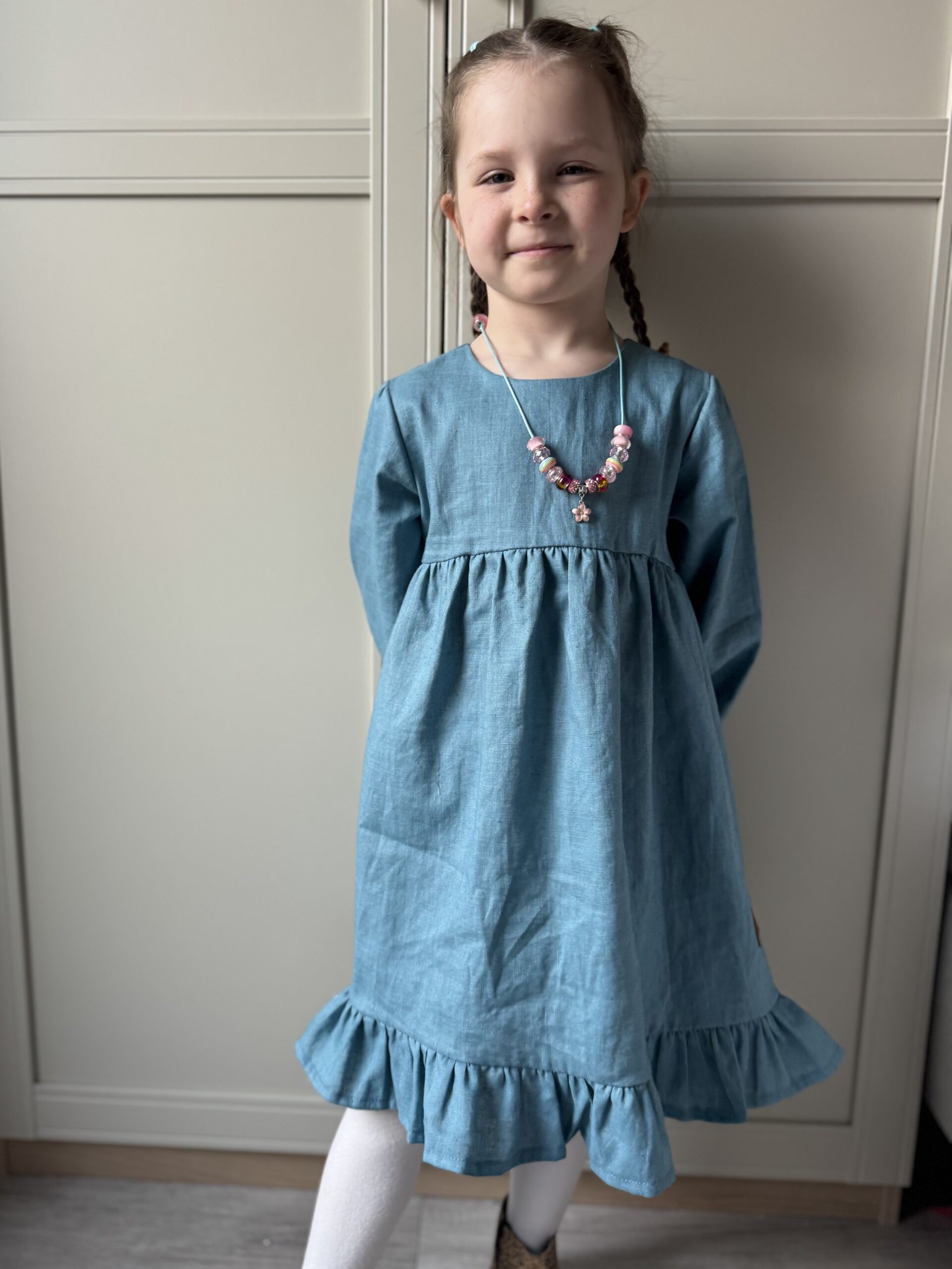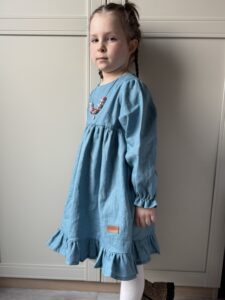 Sukienka dla dziewczynki ROZALIA len MORSKI- len premium, Certyfikat OEKO-TEX®