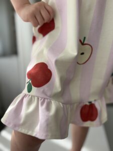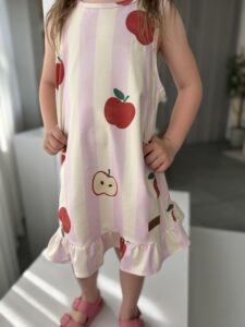 Sukienka dla dziewczynki SUMMER- JABŁKA RÓŻ- Jersey Premium, Certyfikat OEKO-TEX®