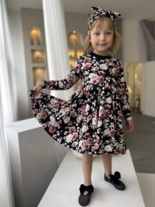 - Krój, który zachwyca: Sukienka z kręcącym dołem , który dodaje uroku i sprawia, że sukienka wspaniale się kręci, co uwielbiają wszystkie dziewczynki.