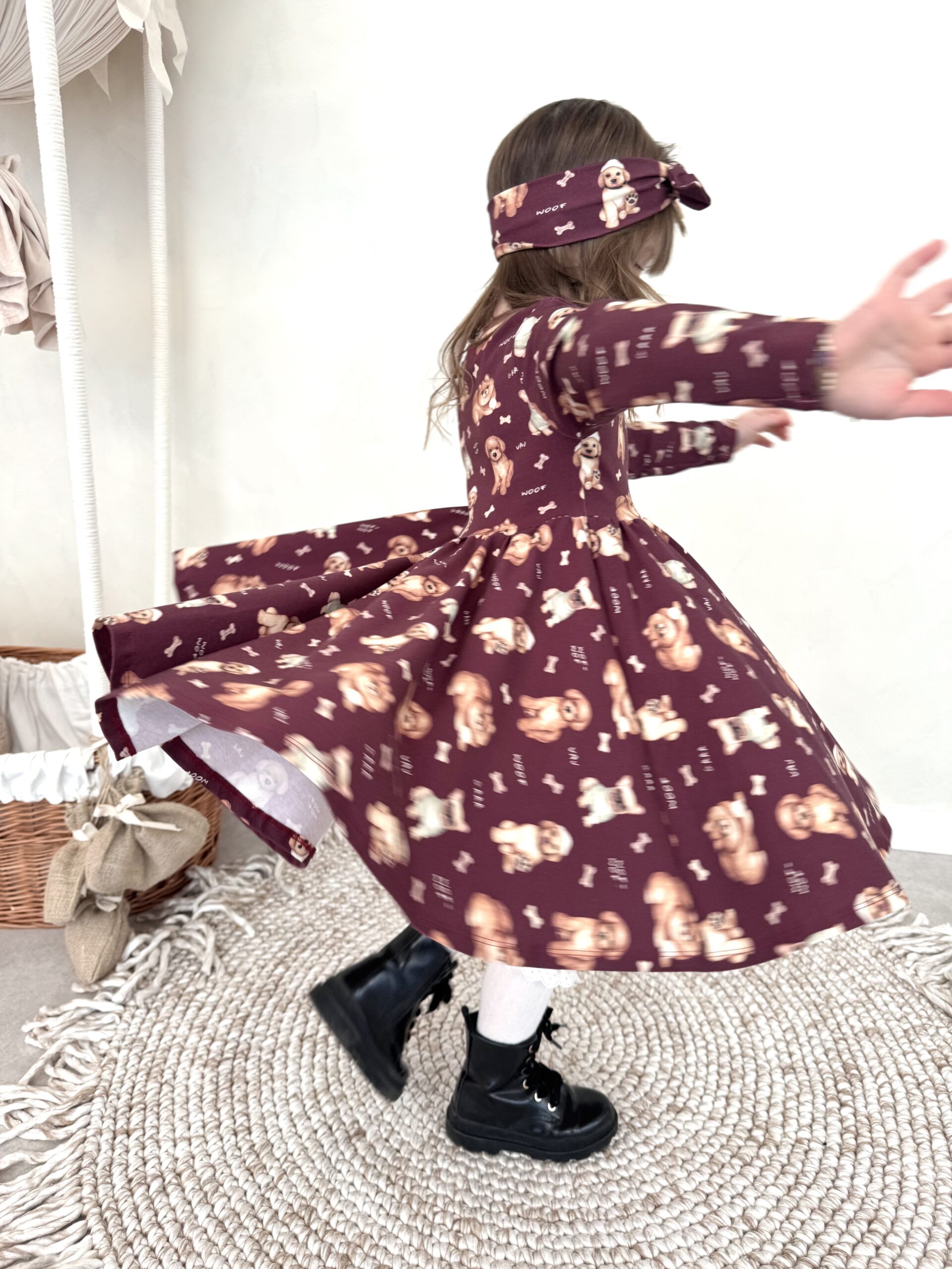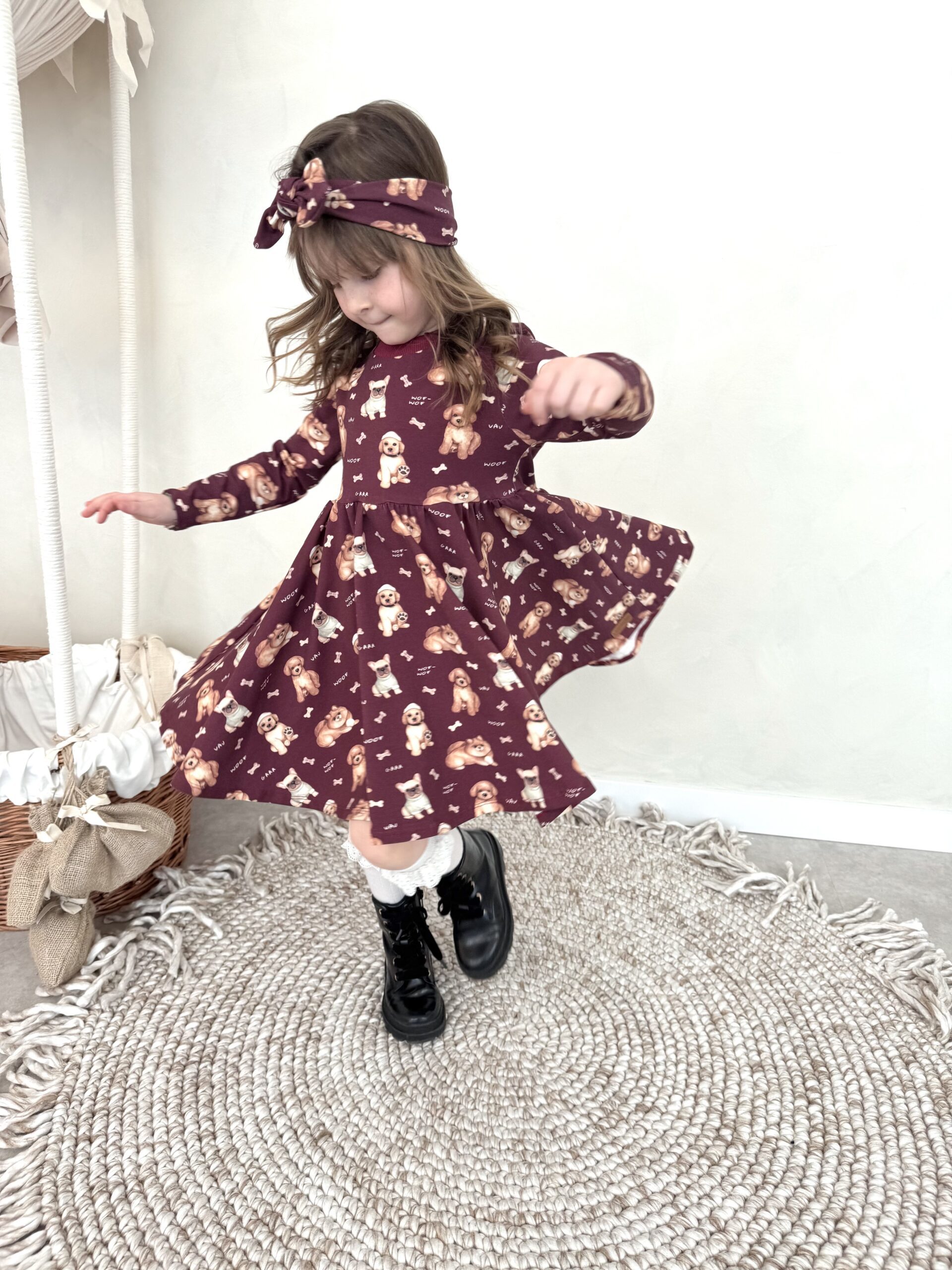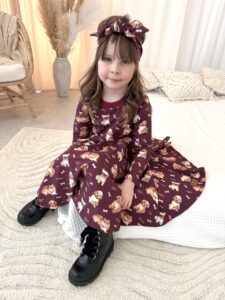 Sukienka dla dziewczynki ZOSIA- PIESKI bordo – Jersey Premium, Certyfikat OEKO-TEX®