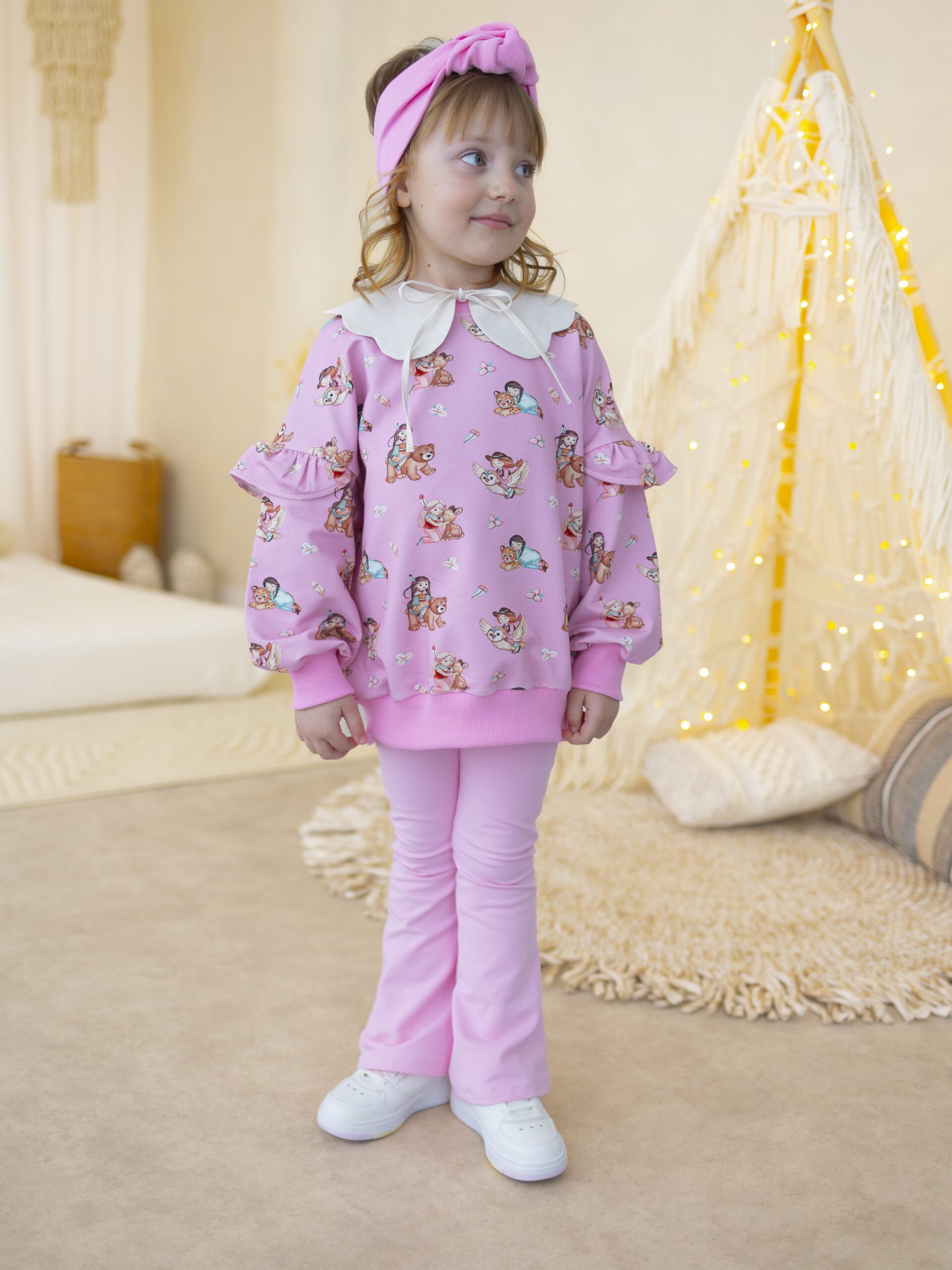 Zestaw bluza falbanka INDIANKI i dzwony BABY PINK z dresówki premium dla dziewczynki