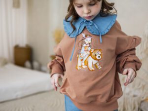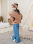 Do kompletu dołączone są spodnie dzwony – absolutny hit sezonu! Elastyczne, miękkie i stylowe, pięknie wydłużają sylwetkę i świetnie układają się podczas ruchu. Zestaw idealny na co dzień, do przedszkola, szkoły, na spacer czy rodzinne wyjścia.