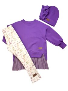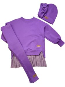 Zestaw bluza FIOLET z tiulem z legginsami z dzianiny premium może być doskonałym wyborem dla dzieci. Oto kilka zalet takiego zestawu: