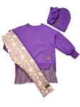 Zestaw bluza fiolet z tiulem z legginsami z dzianiny premium może być świetnym wyborem na specjalne okazje, uroczystości rodzinne lub po prostu na elegancki codzienny strój. Pamiętaj, aby dbać o odpowiedni rozmiar, aby zapewnić dziecku komfort i swobodę ruchów.