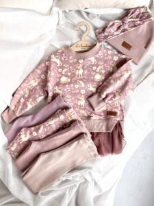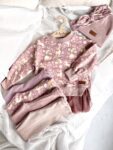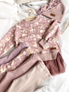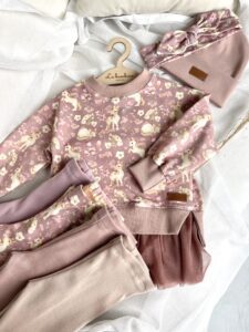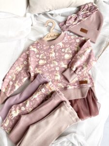 Legginsy od góry: prążek PINK, jednorożce wrzos, prążek, BLUSH, prążek MILKY