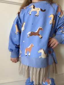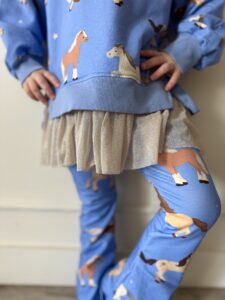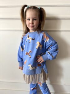 Zestaw bluza tiul i dzwony KONIKI NIEBIESKIE z dzianiny premium może być doskonałym wyborem dla dzieci. Oto kilka zalet takiego zestawu: