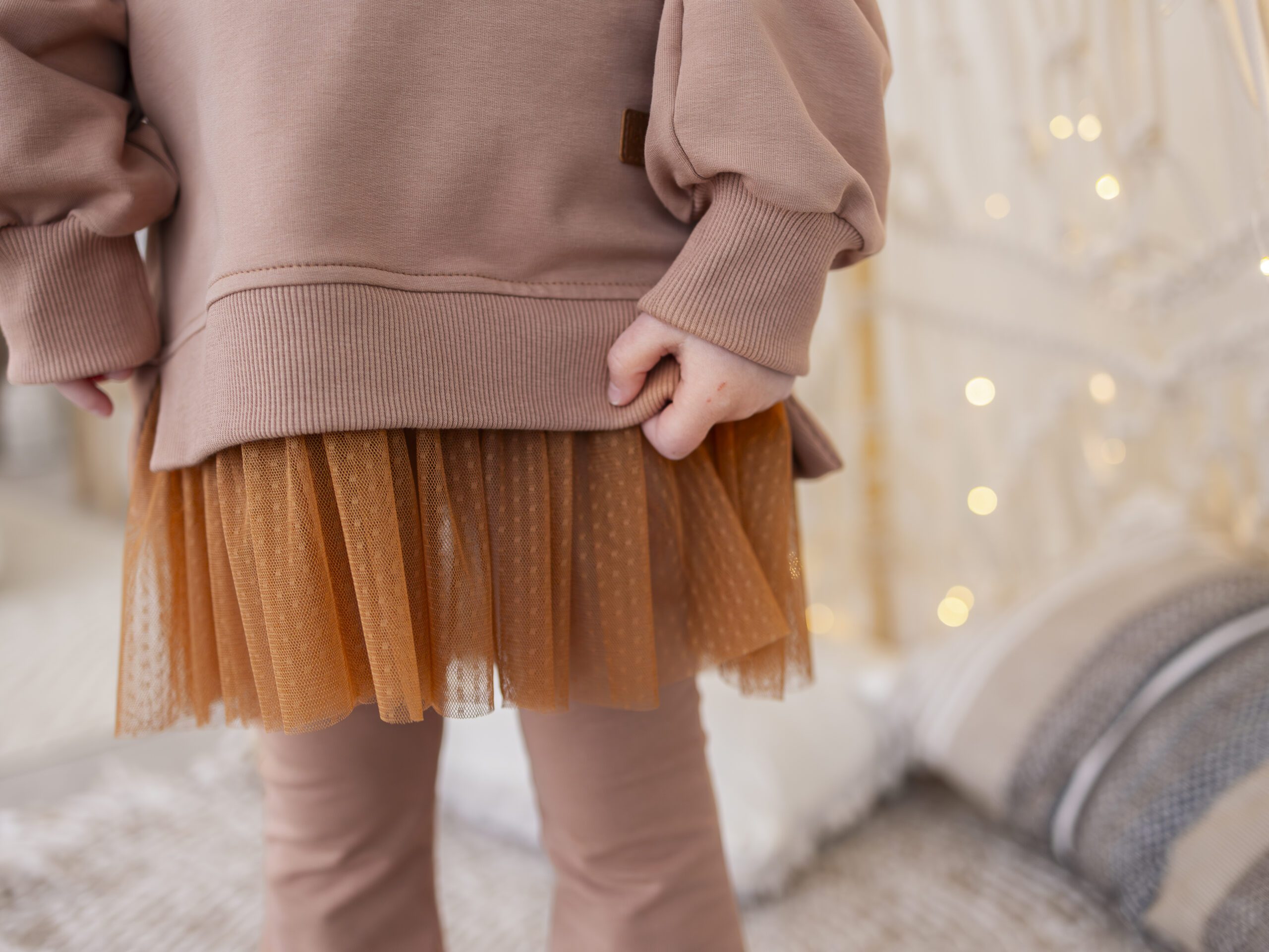 Zestaw bluza tiul i dzwony MOKKA z dzianiny premium może być świetnym wyborem na specjalne okazje, uroczystości rodzinne lub po prostu na elegancki codzienny strój. Pamiętaj, aby dbać o odpowiedni rozmiar, aby zapewnić dziecku komfort i swobodę ruchów.