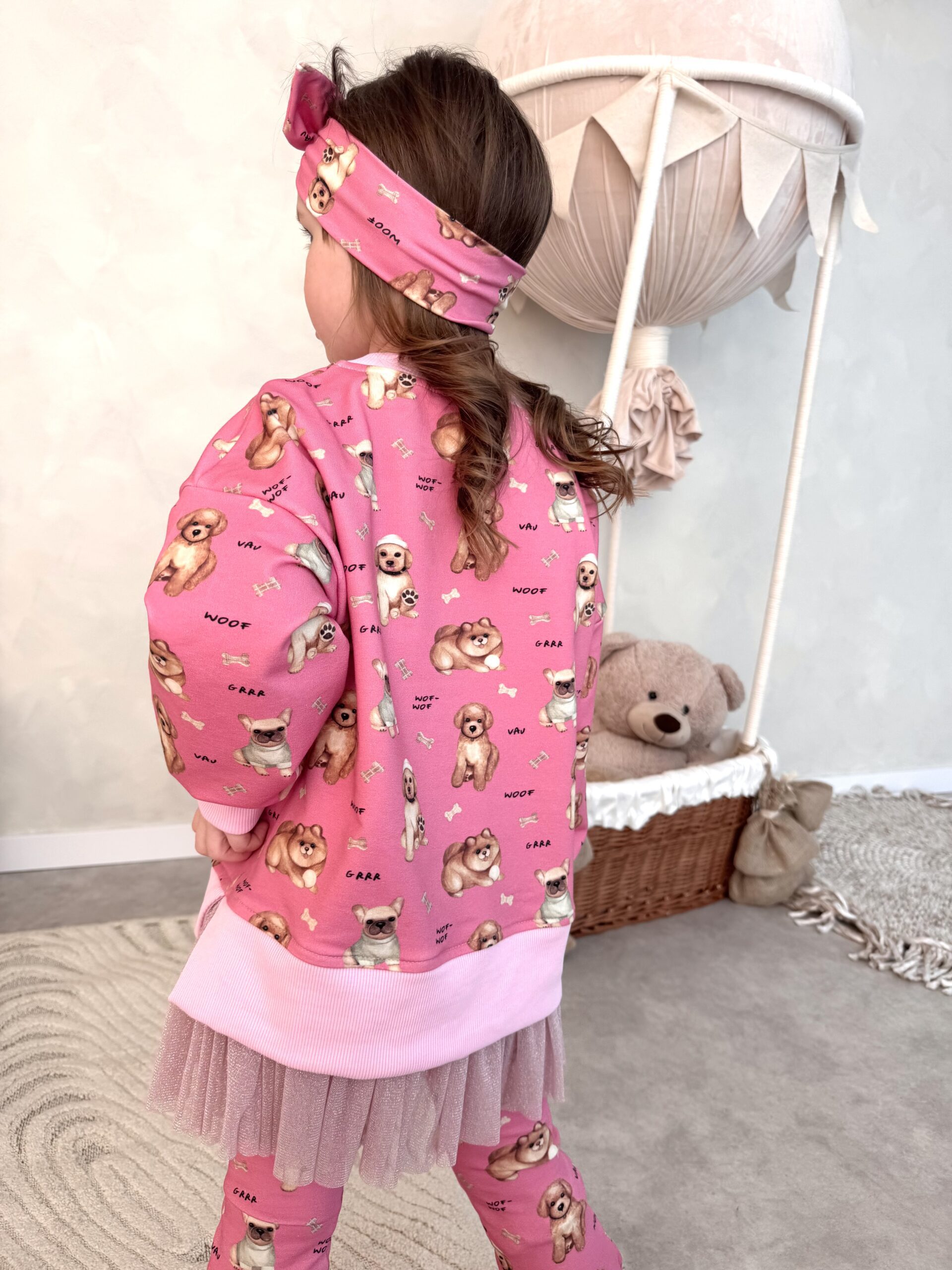 Zestaw bluza tiul i dzwony PIESKI róż Z dzianiny premium może być doskonałym wyborem dla dzieci. Oto kilka zalet takiego zestawu: