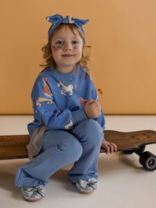 Zestaw bluza tiul KONIKI i dzwony BABY BLUE z dzianiny premium może być doskonałym wyborem dla dzieci. Oto kilka zalet takiego zestawu:
