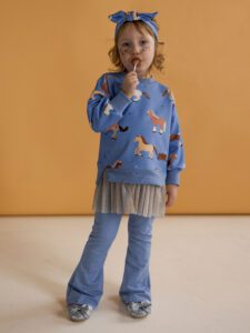 Zestaw bluza tiul KONIKI i dzwony BABY BLUE z dzianiny premium może być świetnym wyborem na specjalne okazje, uroczystości rodzinne lub po prostu na elegancki codzienny strój. Pamiętaj, aby dbać o odpowiedni rozmiar, aby zapewnić dziecku komfort i swobodę ruchów.