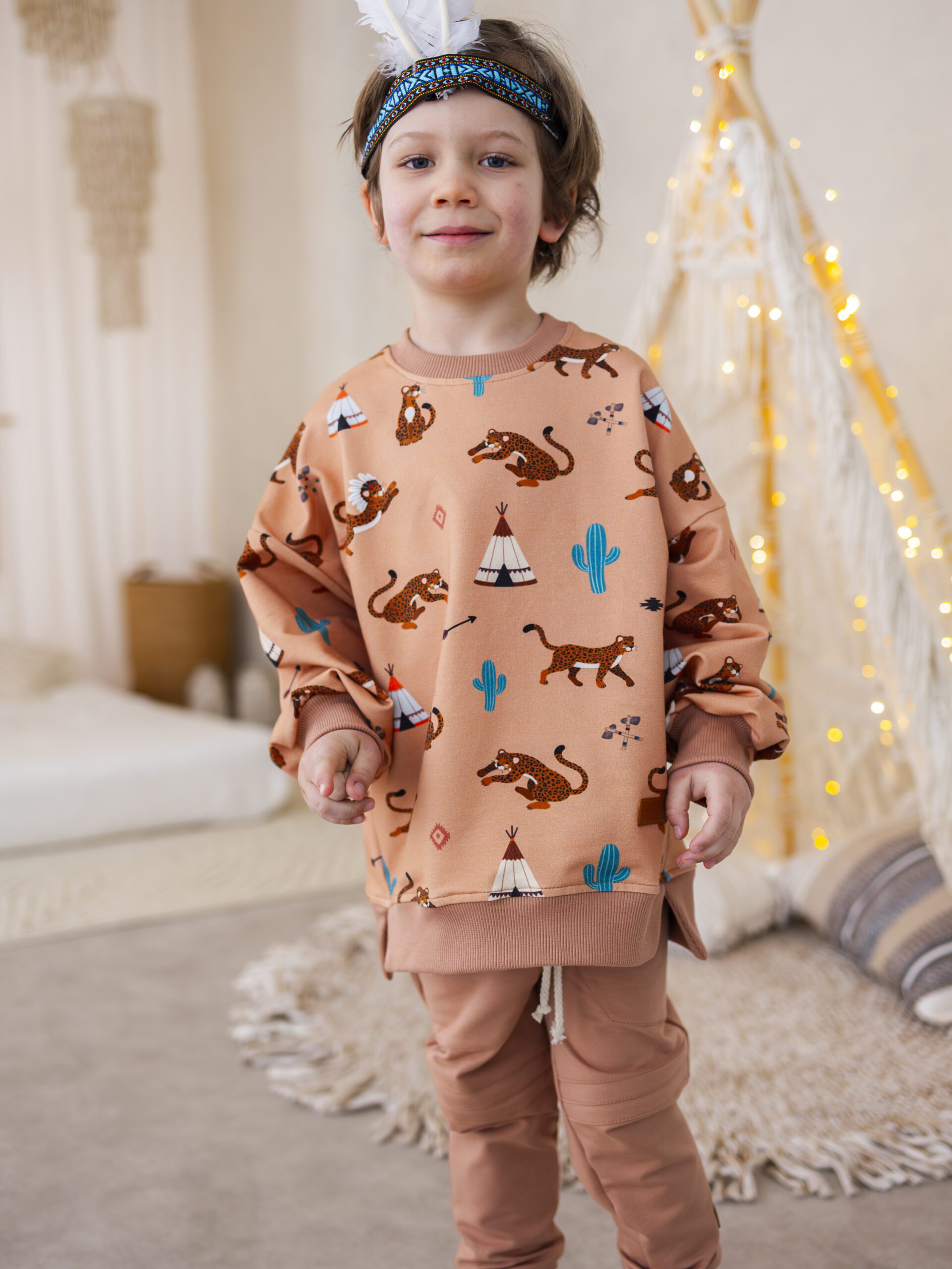 Zestaw chłopięcy BLUZA GEPARD ze spodniami SLIM MOKKA- Bluza w kroju oversized ze spodniami SLIM Standard OEKO-TEX®
