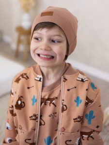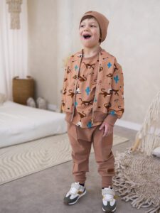 Postaw na komfort, naturalne materiały i ponadczasowy styl – wybierz komplet Zestaw chłopięcy bluza ROZPINANA GEPARD z baggy MOKKA dla swojego chłopca.