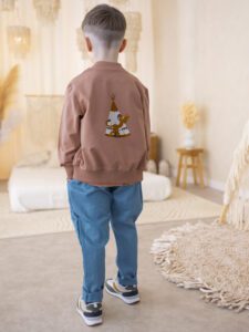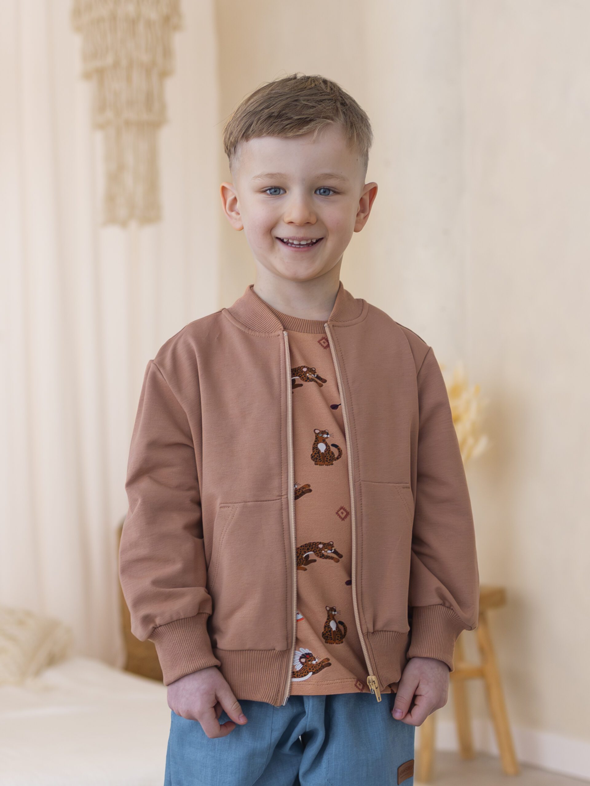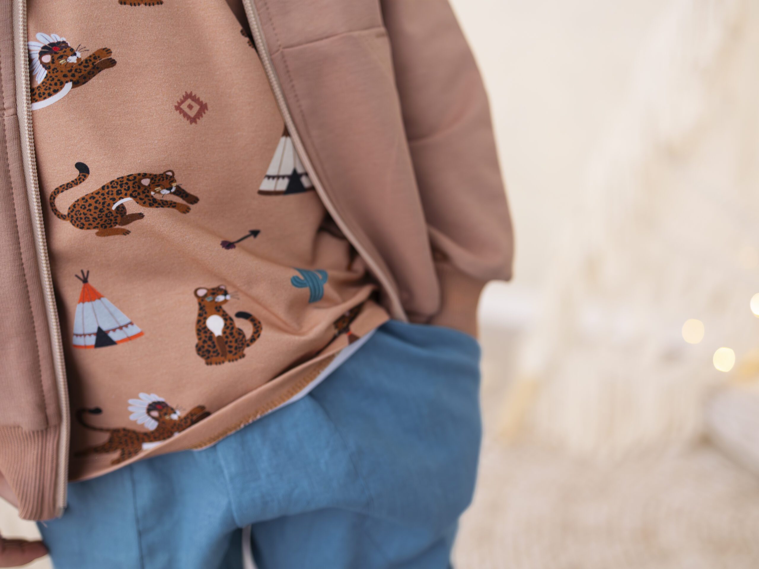 Longsleeve GEPARD został uszyty z wysokogatunkowej dzianiny jersey premium, która jest miękka, elastyczna i przyjazna dla skóry dziecka. Oddychający materiał zapewnia komfort noszenia przez cały dzień – zarówno w przedszkolu, w szkole, jak i podczas aktywnej zabawy. Modny print z gepardem nadaje stylizacji charakteru i sprawia, że to nie tylko zwykła bluzka, ale designerski longsleeve chłopięcy premium.