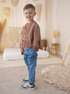 Postaw na komfort, naturalne materiały i ponadczasowy styl – wybierz komplet LONG GEPARD i baggy len MORSKI dla swojego chłopca.