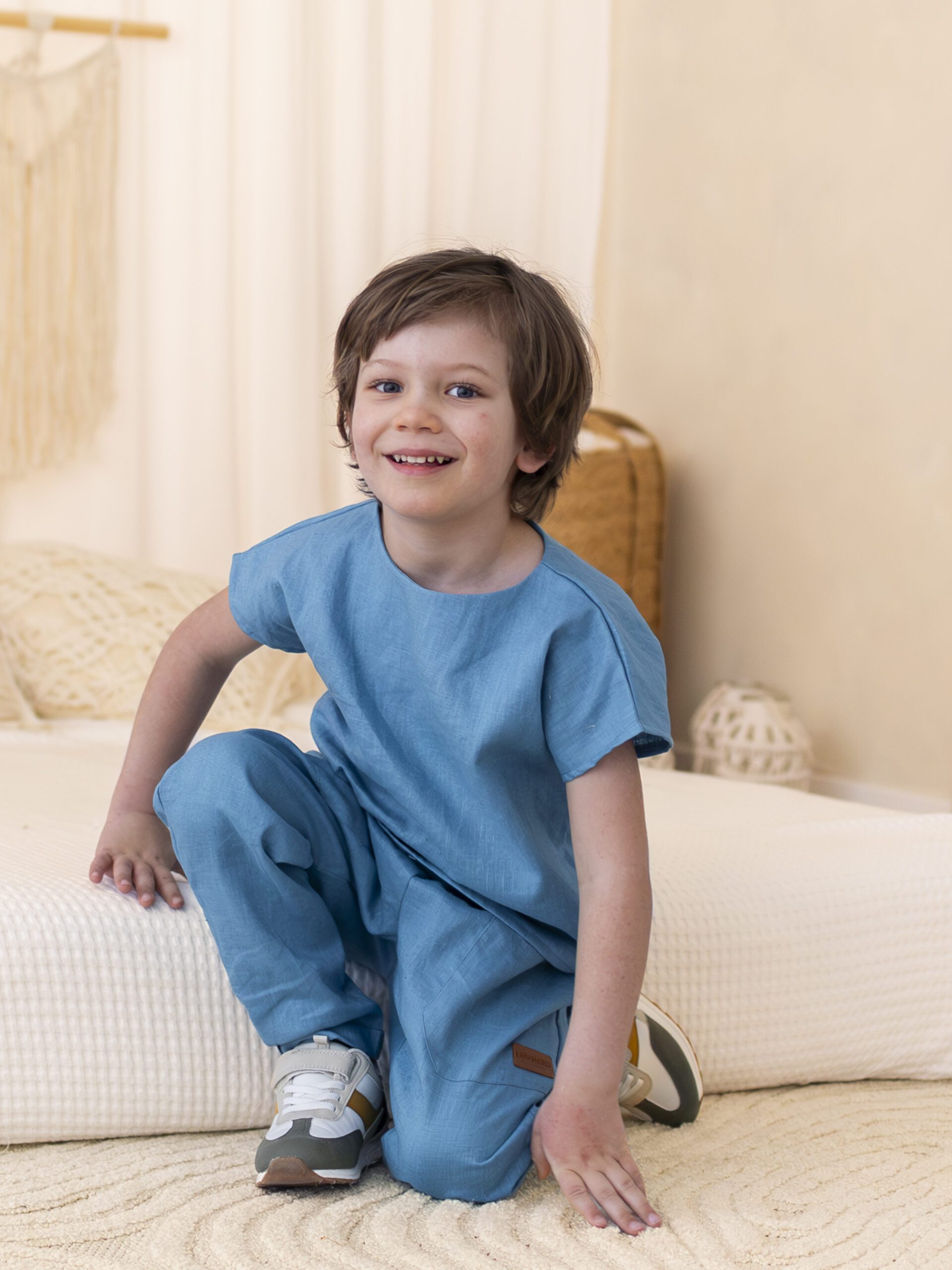 Jeśli szukasz stylowego, wygodnego i ponadczasowego rozwiązania, ten lniany komplet dla chłopca będzie doskonałym wyborem – niezależnie od okazji.