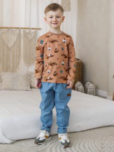 Longsleeve GEPARD został uszyty z wysokogatunkowej dzianiny jersey premium, która jest miękka, elastyczna i przyjazna dla skóry dziecka. Oddychający materiał zapewnia komfort noszenia przez cały dzień – zarówno w przedszkolu, w szkole, jak i podczas aktywnej zabawy. Modny print z gepardem nadaje stylizacji charakteru i sprawia, że to nie tylko zwykła bluzka, ale designerski longsleeve chłopięcy premium.