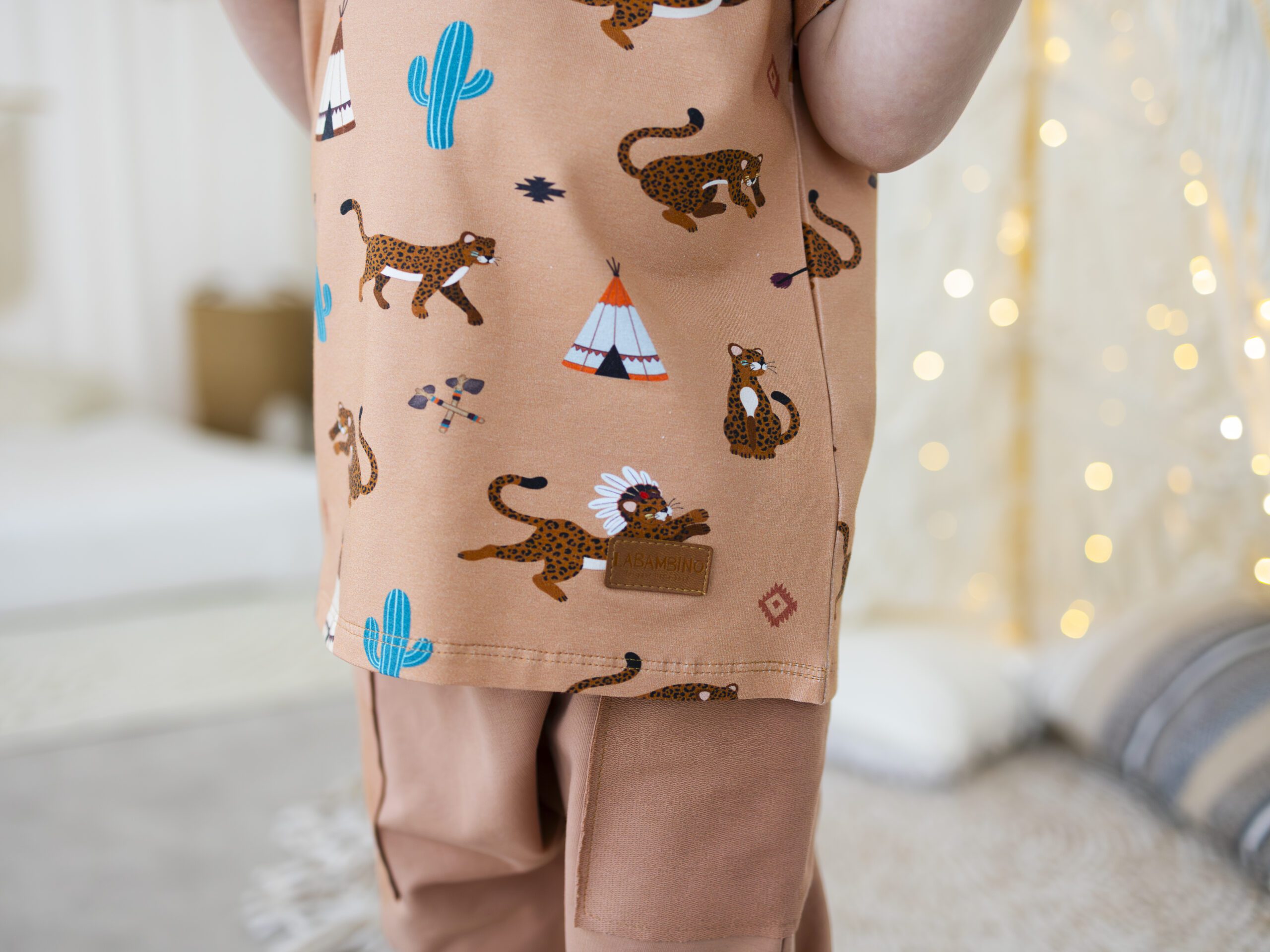 Zestaw chłopięcy TSHIRT GEPARD z baggy MOKKA – Standard OEKO-TEX®