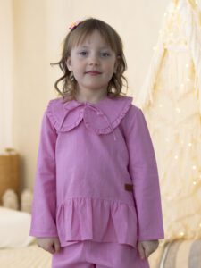 Zestaw dziewczęcy BLOOM z lnu to wyjątkowy komplet stworzony z myślą o komforcie, naturalności i ponadczasowym stylu. Jeśli szukasz idealnego rozwiązania na lato, uroczystość rodzinną lub codzienną stylizację w duchu slow fashion – ten lniany komplet dla dziewczynki będzie doskonałym wyborem.