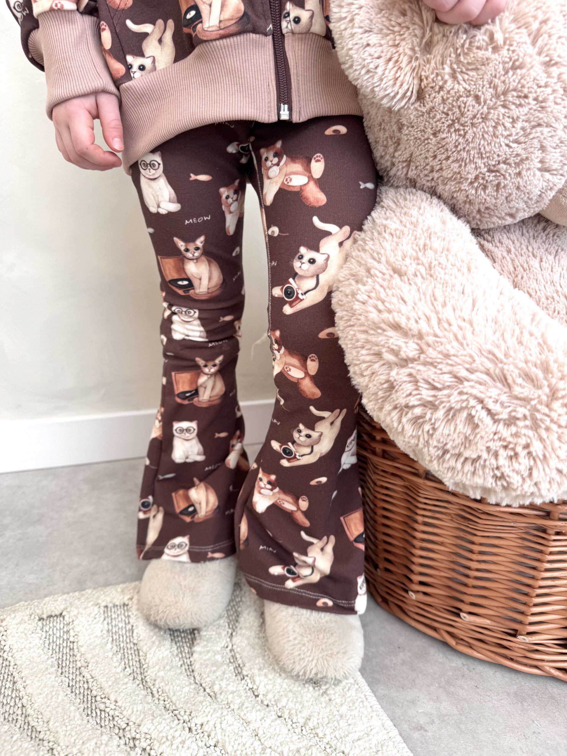 Zestaw dziewczęcy bluza rozpinana i dzwony KOTKI czekolada- Dresówka Premium, Certyfikat OEKO-TEX®